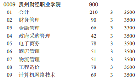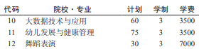 注:第一列为代码,第二列为院校专业,第三列为计划,第四列为学制,第五列为学费。