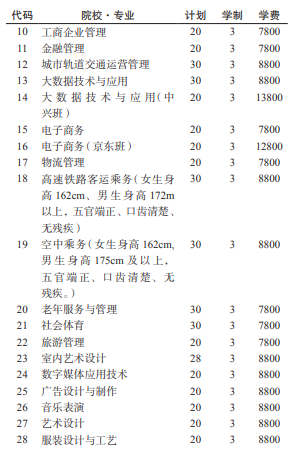 注:第一列为代码,第二列为院校专业,第三列为计划,第四列为学制,第五列为学费。