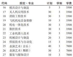 注:第一列为代码,第二列为院校专业,第三列为计划,第四列为学制,第五列为学费。