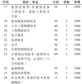注:第一列为代码,第二列为院校专业,第三列为计划,第四列为学制,第五列为学费。