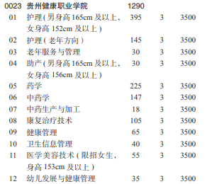 贵州健康职业学院专业及计划