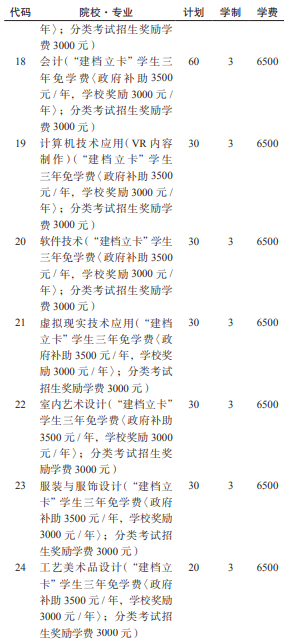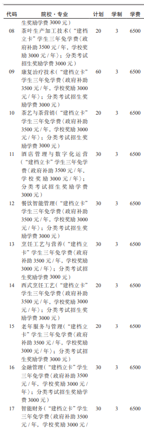 注:第一列为代码,第二列为院校专业,第三列为计划,第四列为学制,第五列为学费。
