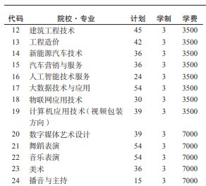 注:第一列为代码,第二列为院校专业,第三列为计划,第四列为学制,第五列为学费。