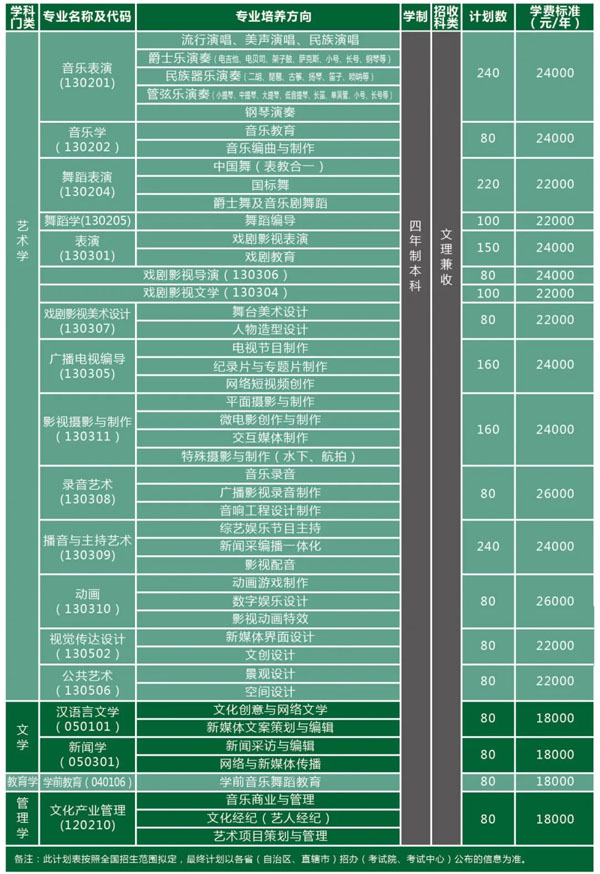 2021年天津体育学院运动与文化艺术学院本科招生计划