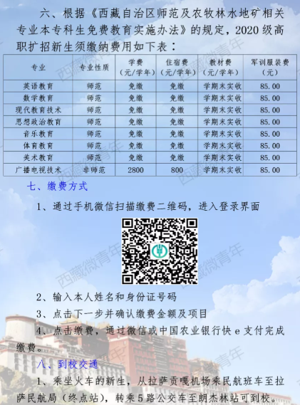 拉萨师范高等专科学校2020年高职扩招新生报到须知发布,具体报到时间及材料如下,供参考。