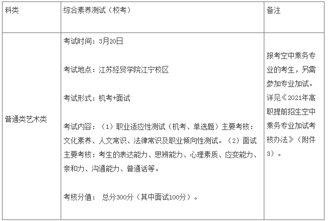 考核工作在江苏省教育考试院指导与监督下,实行“普通高中学业水平合格性考试+综合素养测试”相结合的考核模式,综合素养测试分为职业适应性测试和面试。