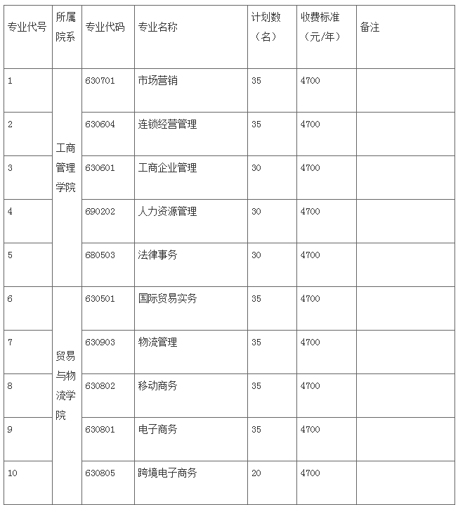 2021年江苏经贸职业技术学院提前招生专业及计划