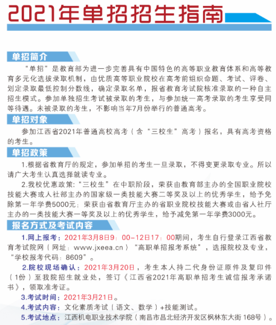 江西机电职业技术学院2021年单招招生简章