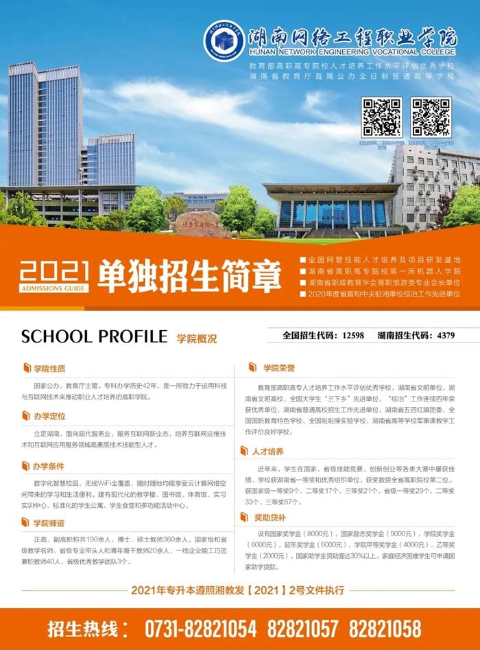 单招越来越受大家认可,2021年湖南网络工程职业学院单独招生章程已经发布,一些想要走单招的小伙伴快来看看小编整理的相关内容,对该所学校感兴趣的考生和家长也可以来参考一下,希望对你有所帮助!