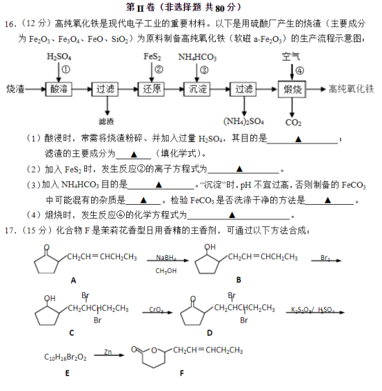 江苏理综试题