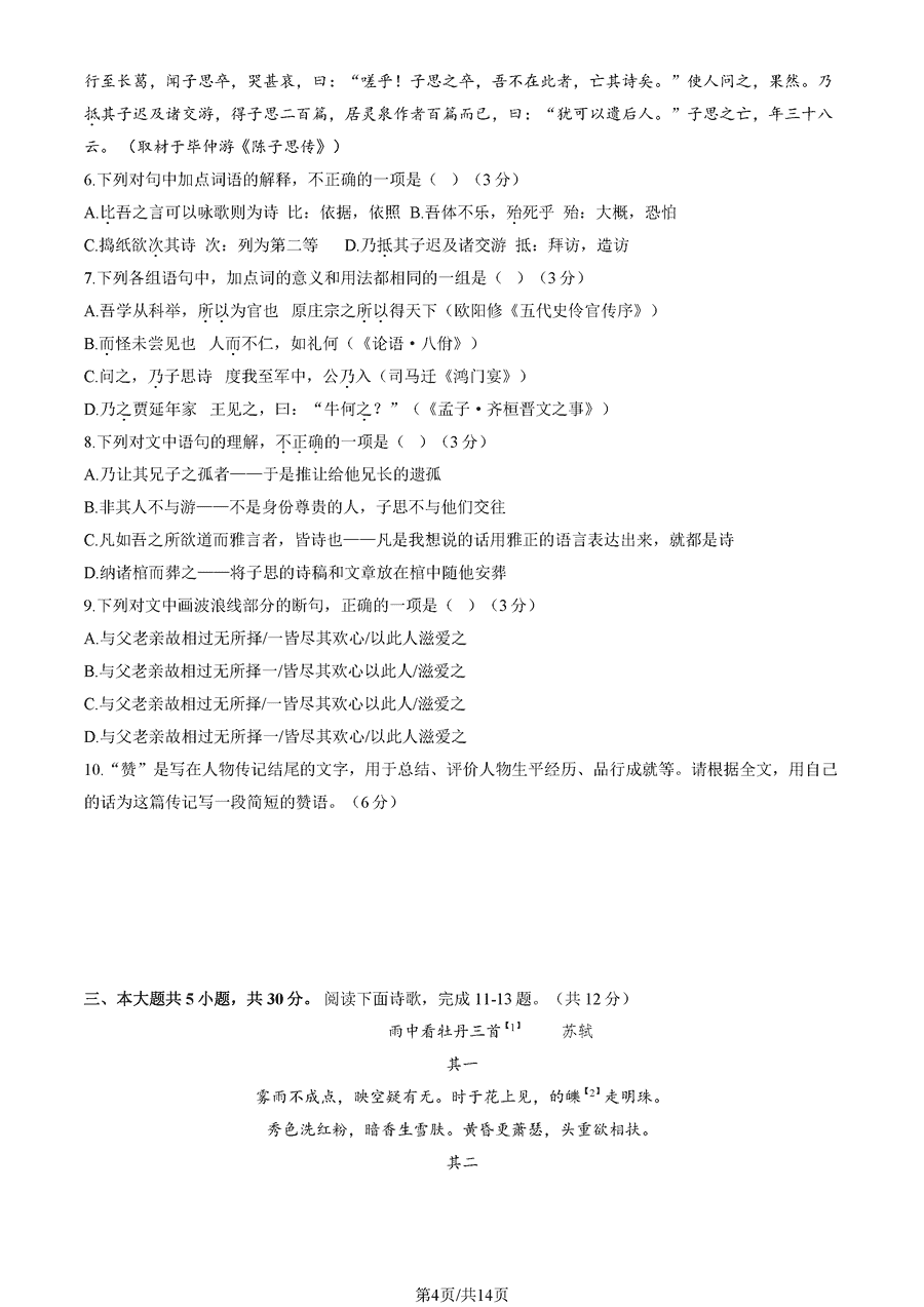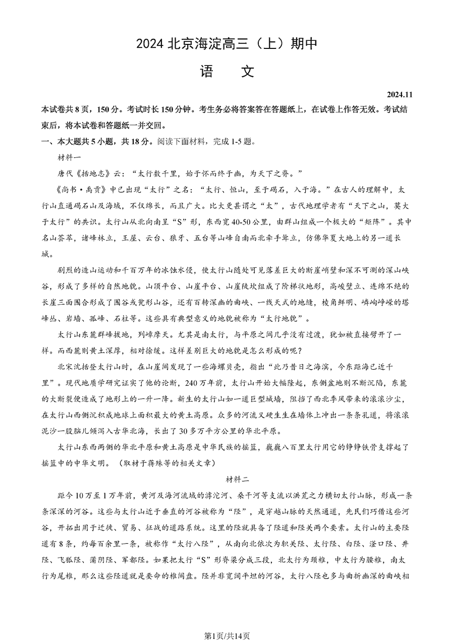 北京海淀区2024-2025学年高三上学期期中语文试题及答案