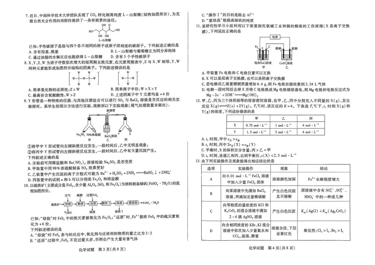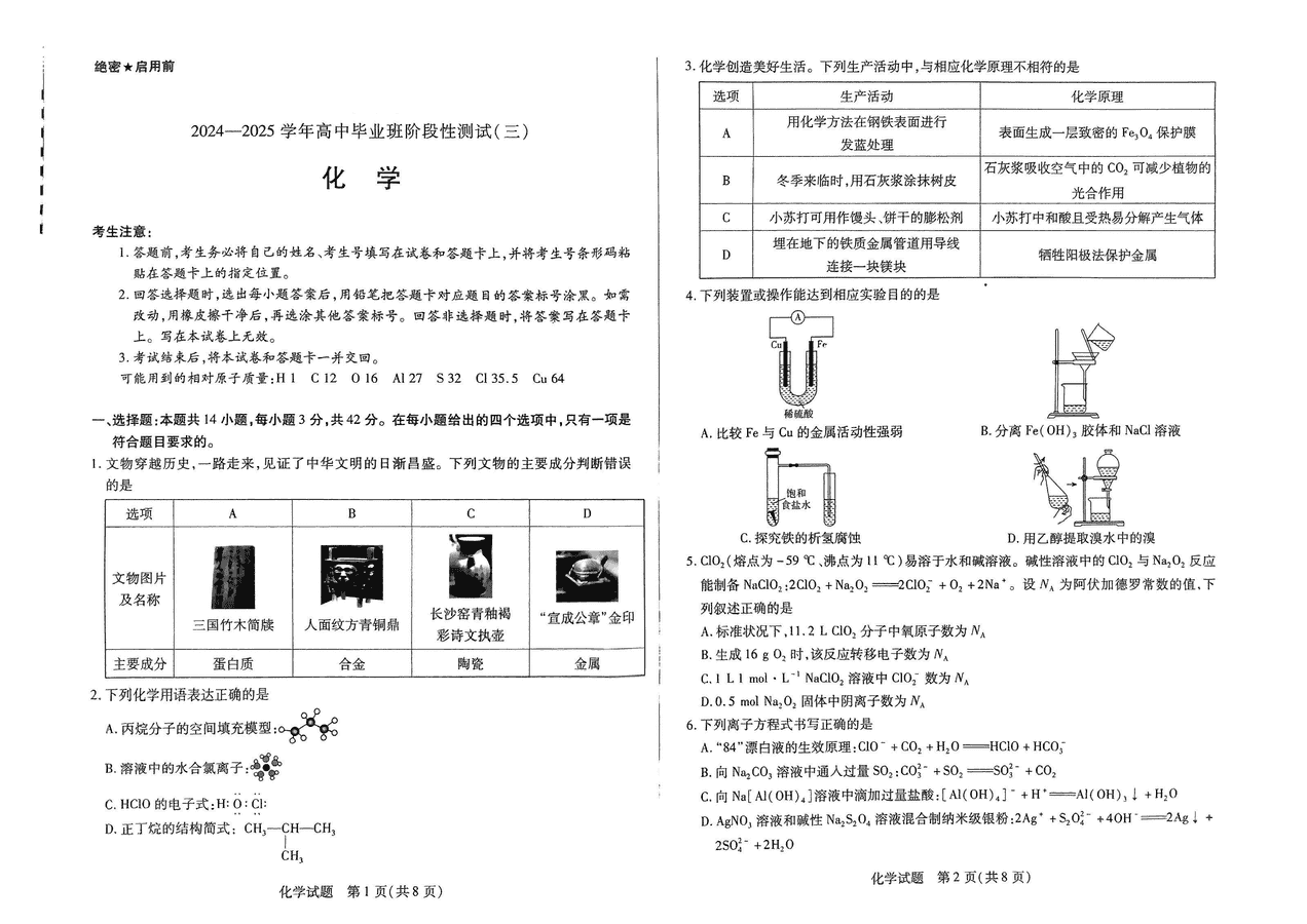 2025届河南天一大联考高三阶段性检测(三)化学试题及答案