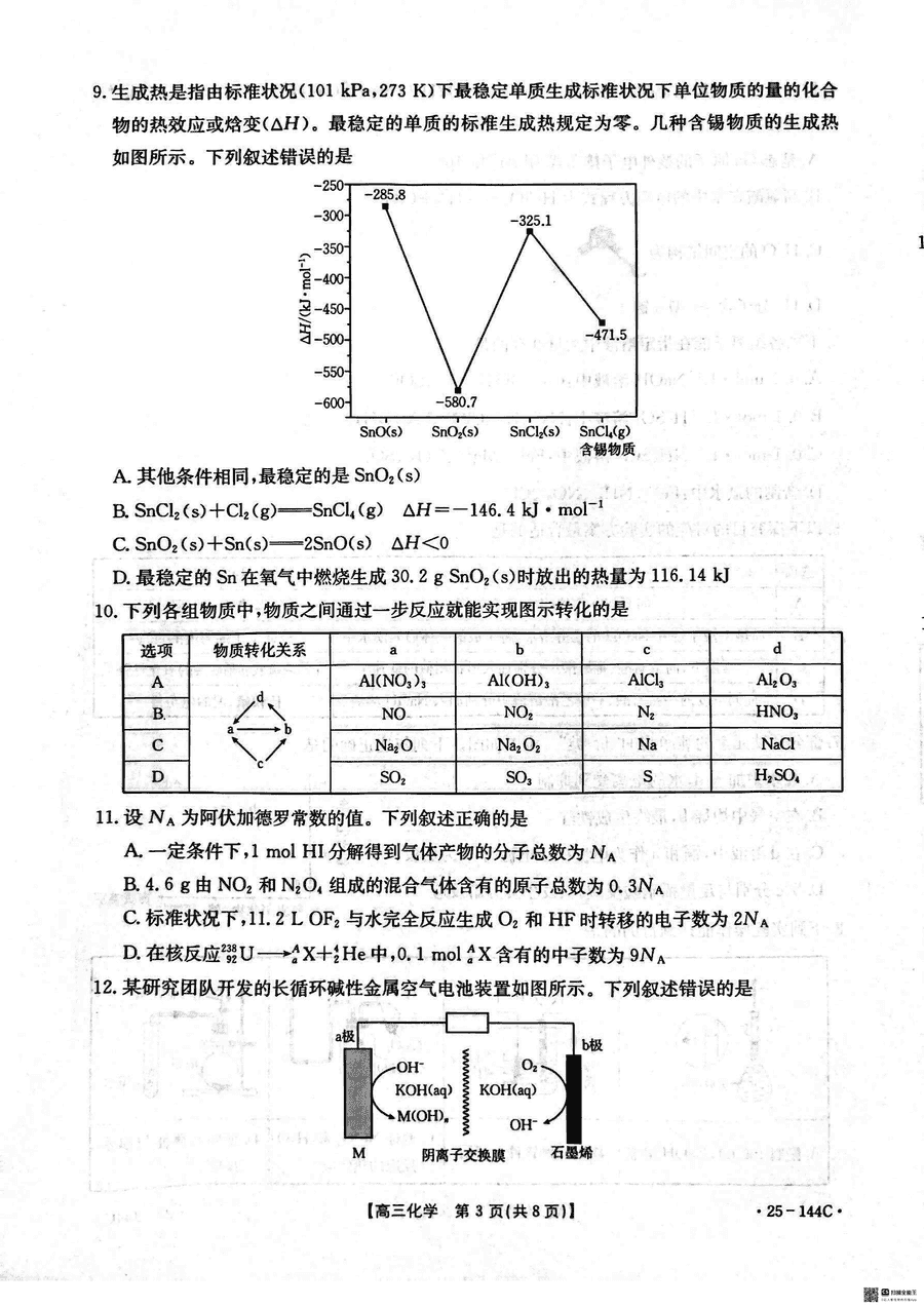 邢台市质检联盟2025届高三上11月期中化学试题及答案