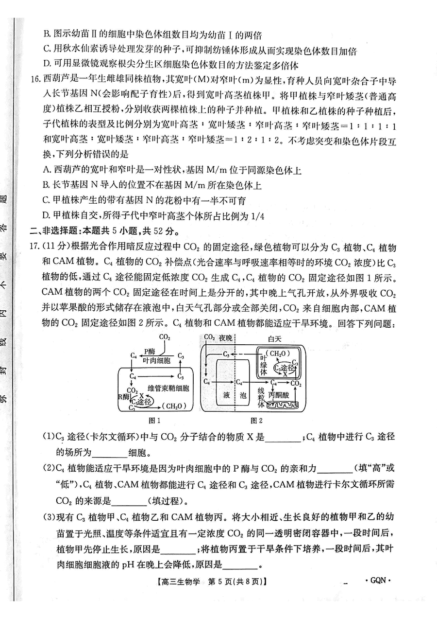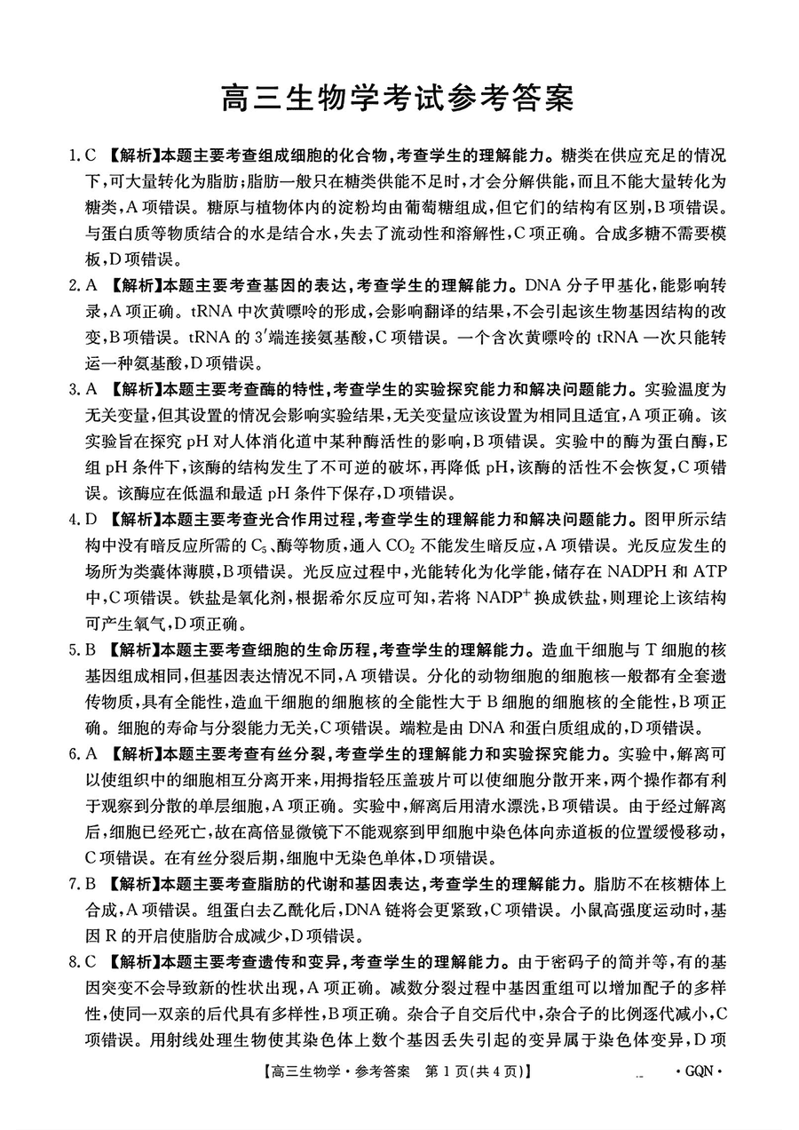 甘肃/青海/宁夏金太阳百校联考2025届高三11月联考生物试题及答案