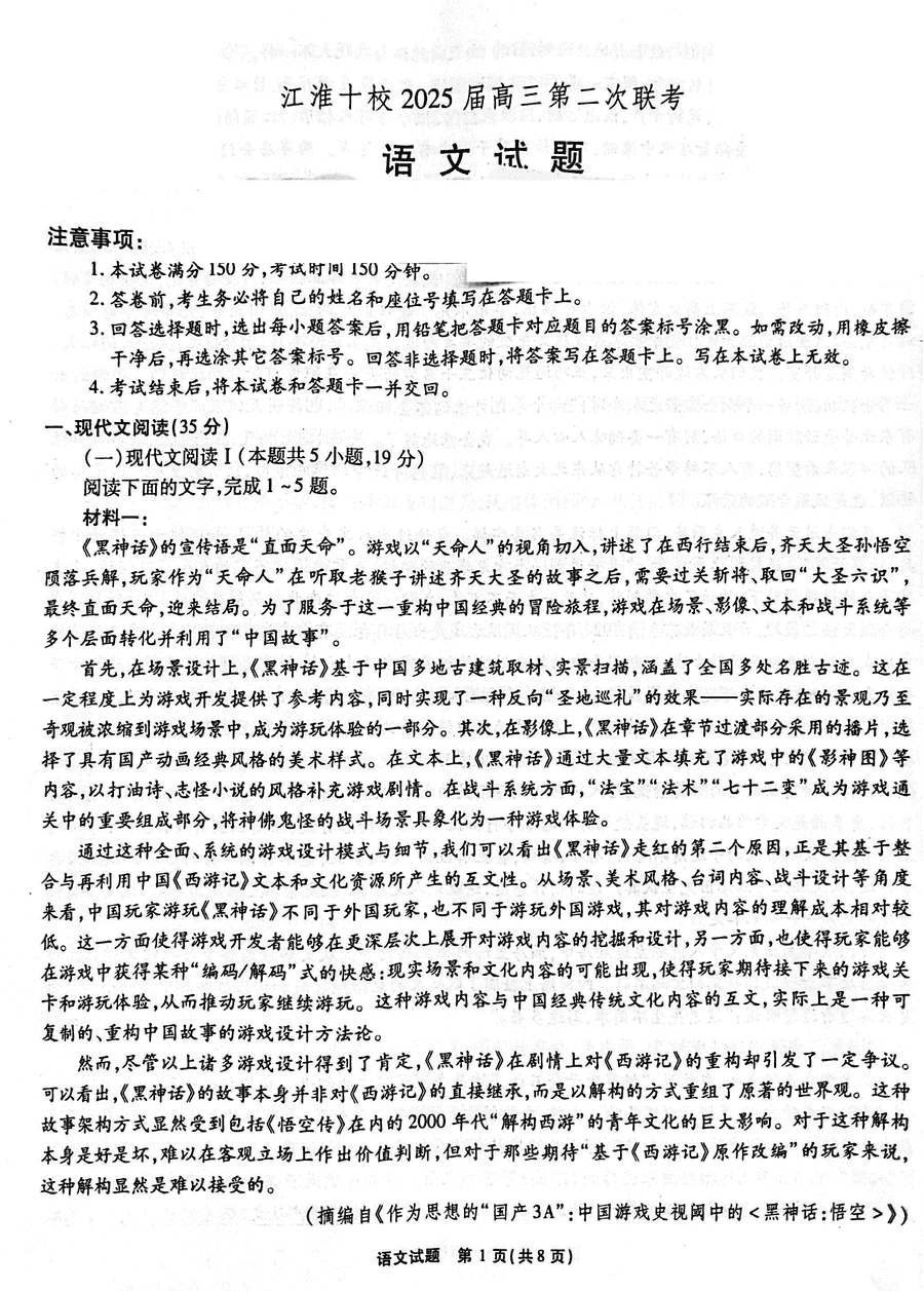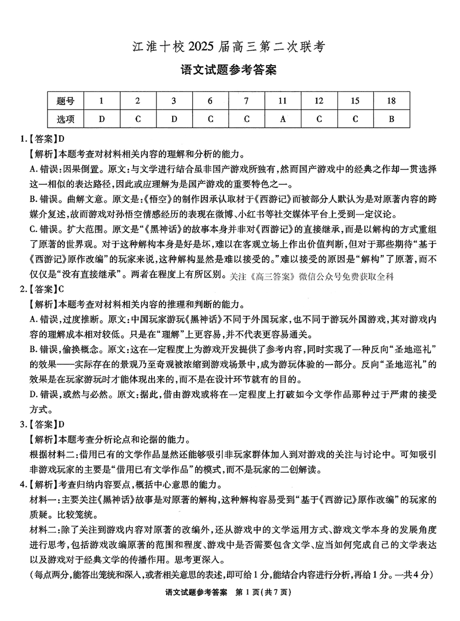 江淮十校2025届高三第二次联考语文试题及答案 时间:2024-11-16 13:46 安徽 语文试题 安徽江淮十校2025届高三第二次联考语文考试已于近日开考,为方便考生考后及时查看考试情况,查漏补缺、弥补不足,本文整理了试题答案解析相关信息! 汇总:江淮十校2025届高三第二次联考试题及答案汇总 语文试题及答案解析