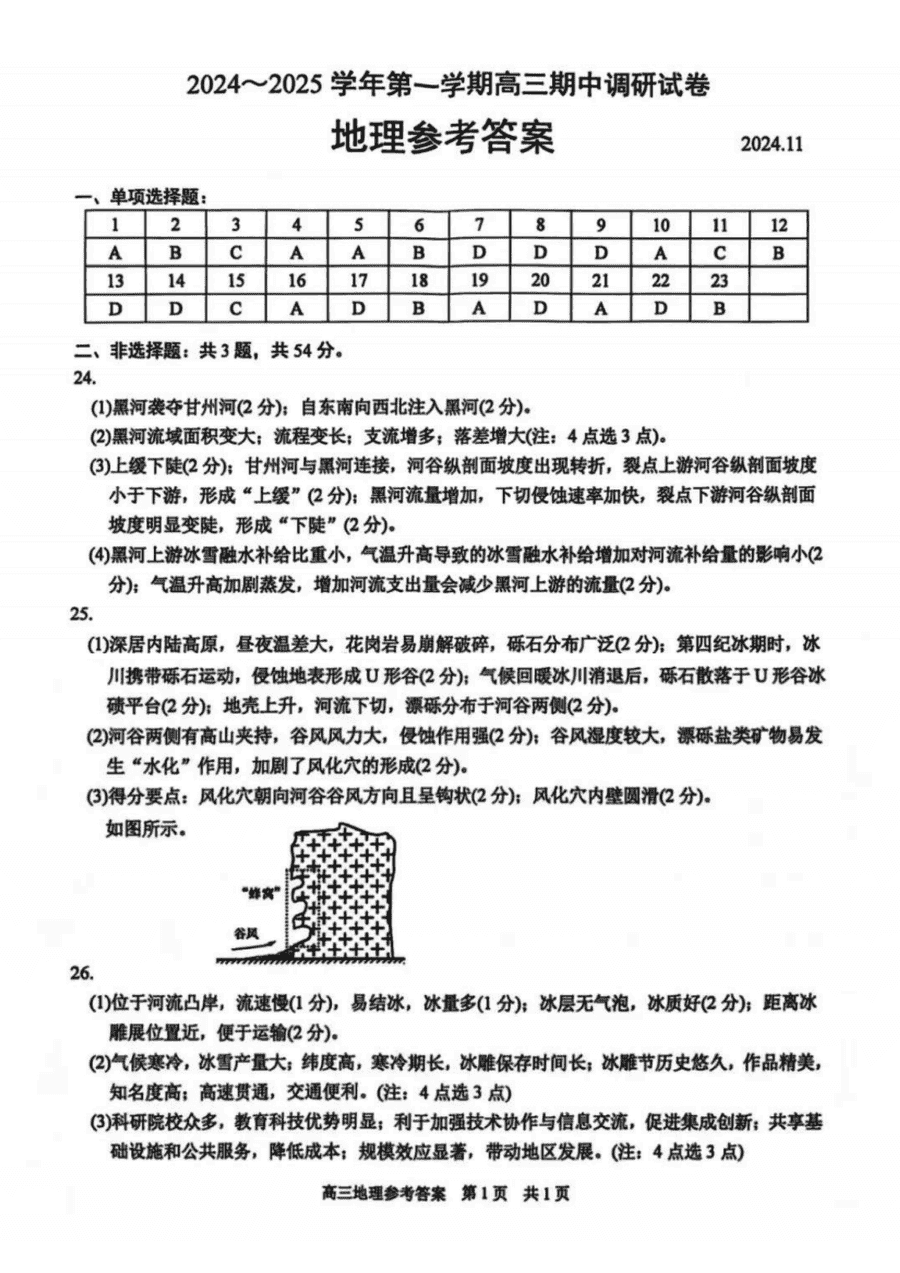 苏州市2024-2025学年高三上学期11月期中调研地理考试已于近日开考,为方便考生考后及时查看考试情况,查漏补缺、弥补不足,本文整理了试题答案解析相关信息!