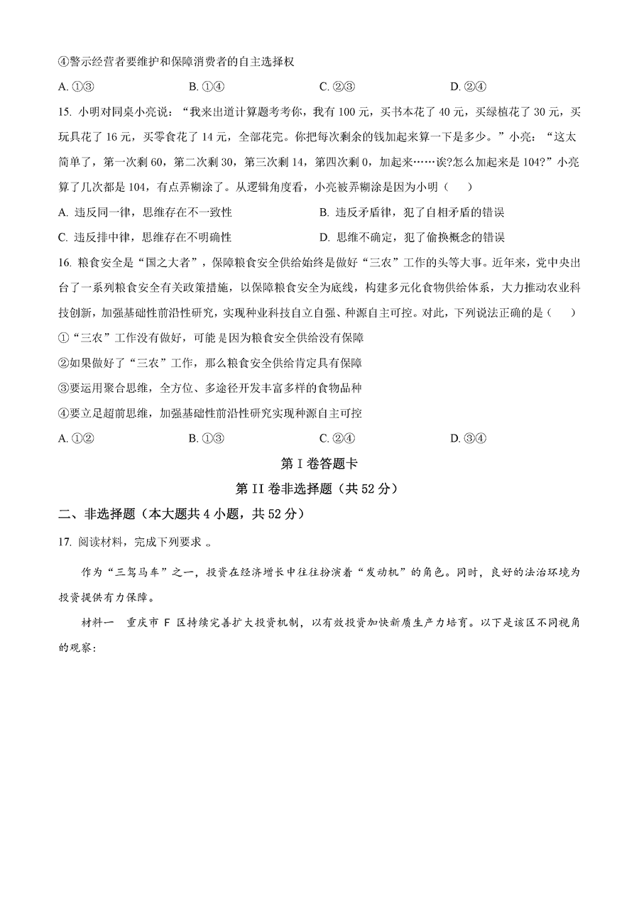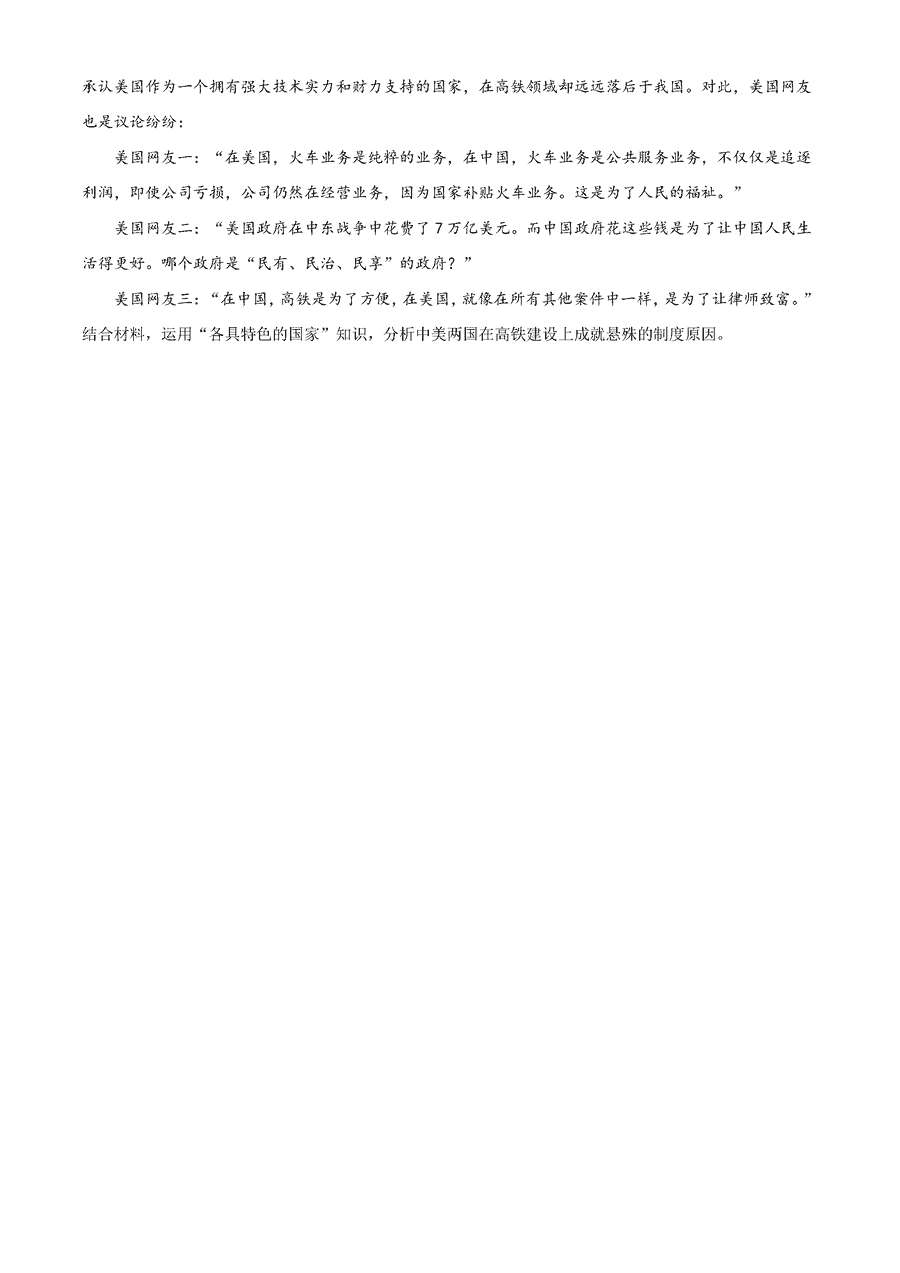 湖南长沙一中2025届高三月考试卷(三)政治试题及答案