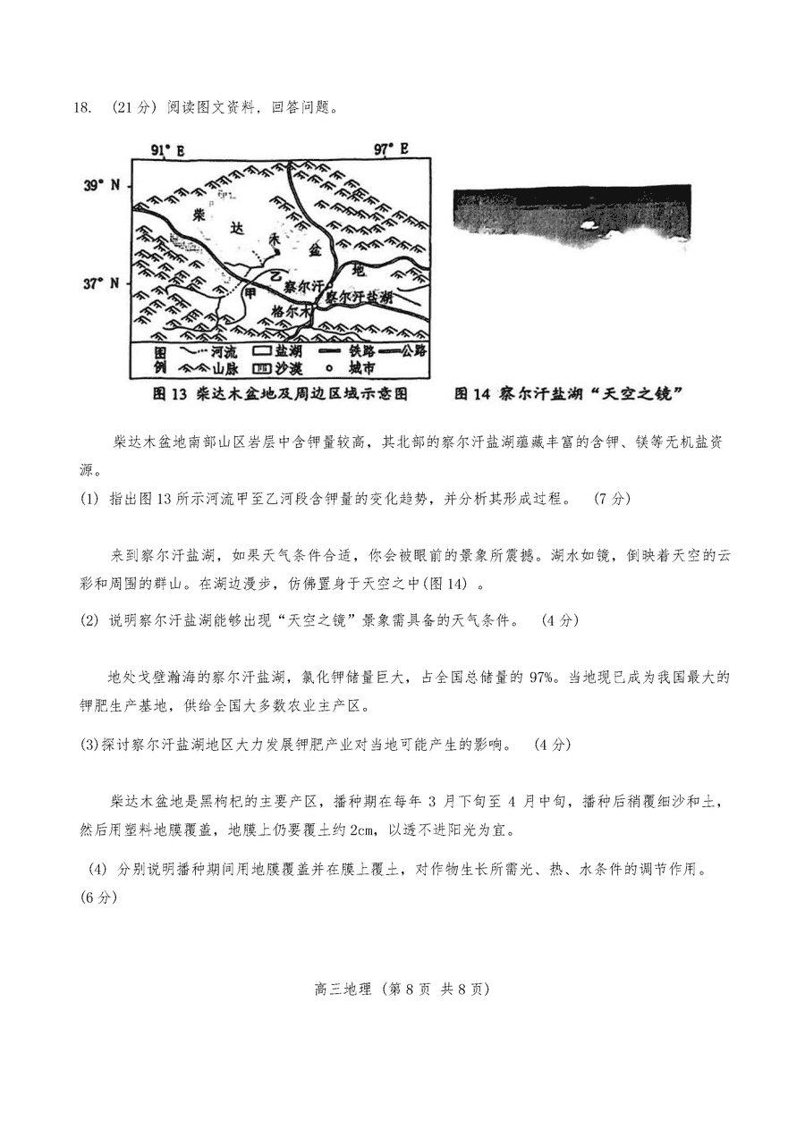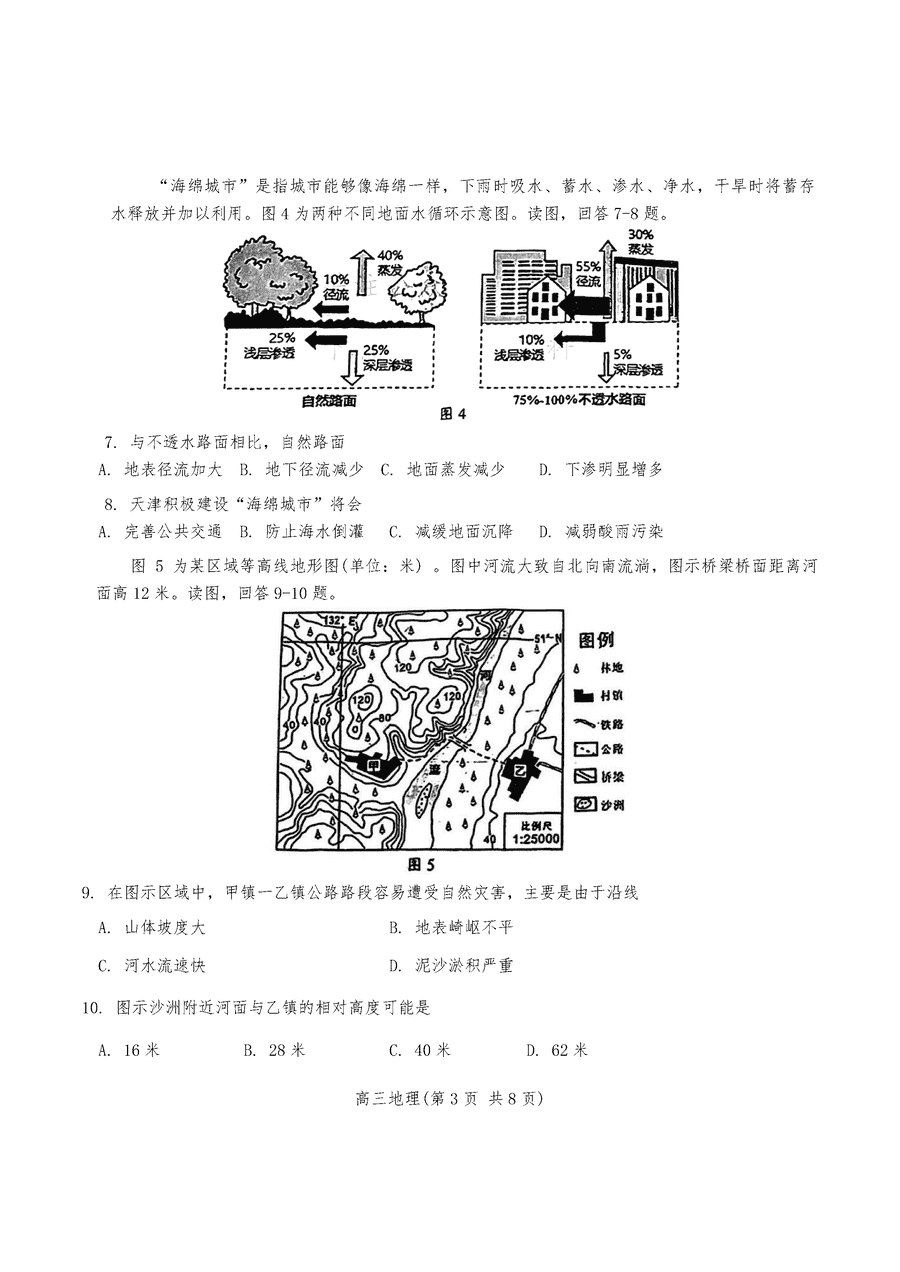 天津市南开区2024-2025学年高三上11月期中地理试题及答案