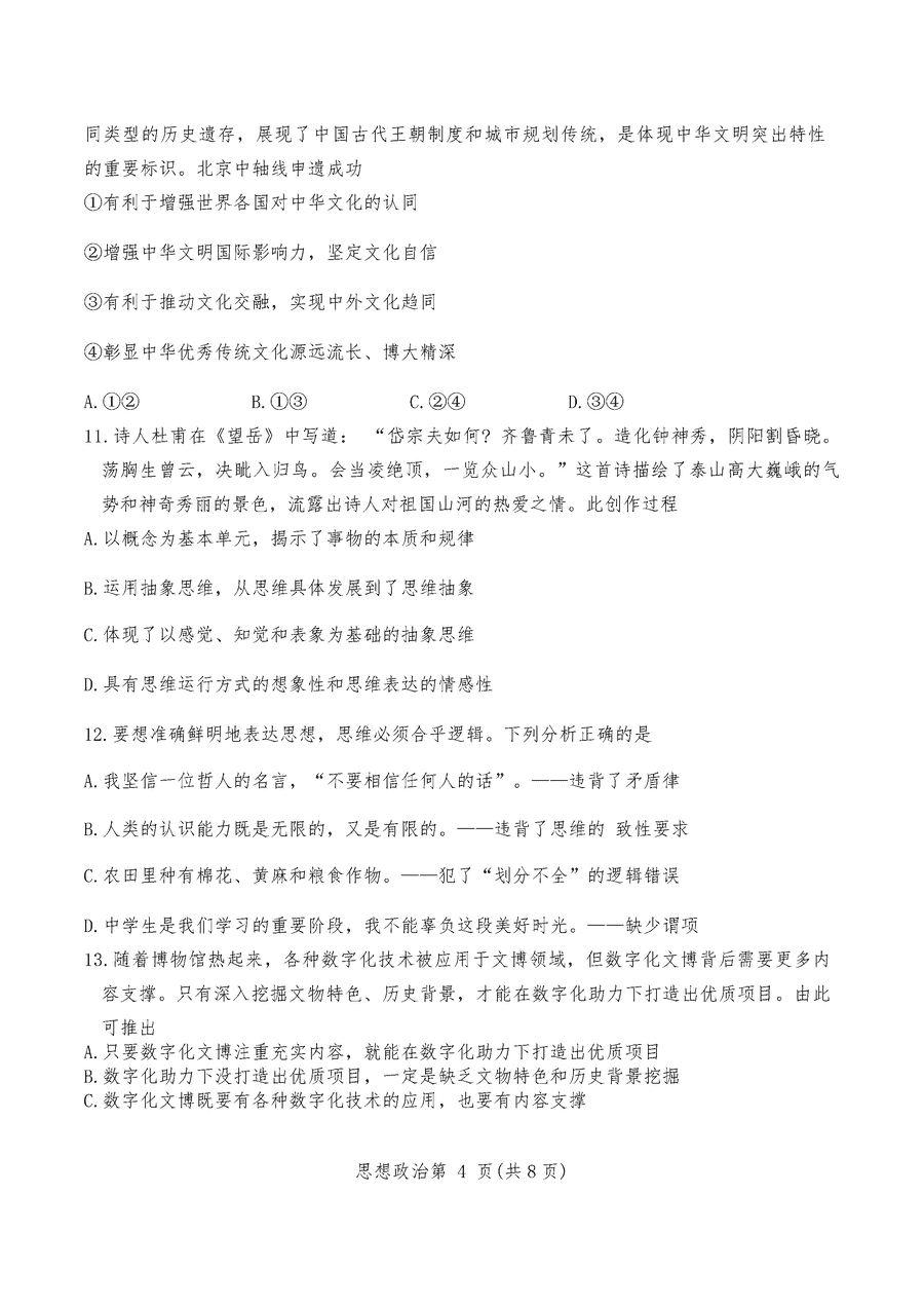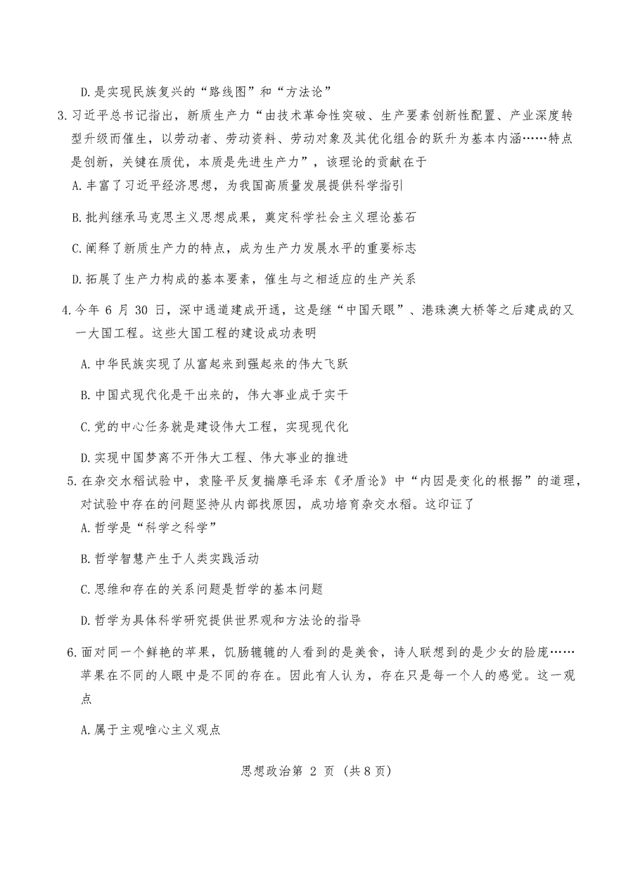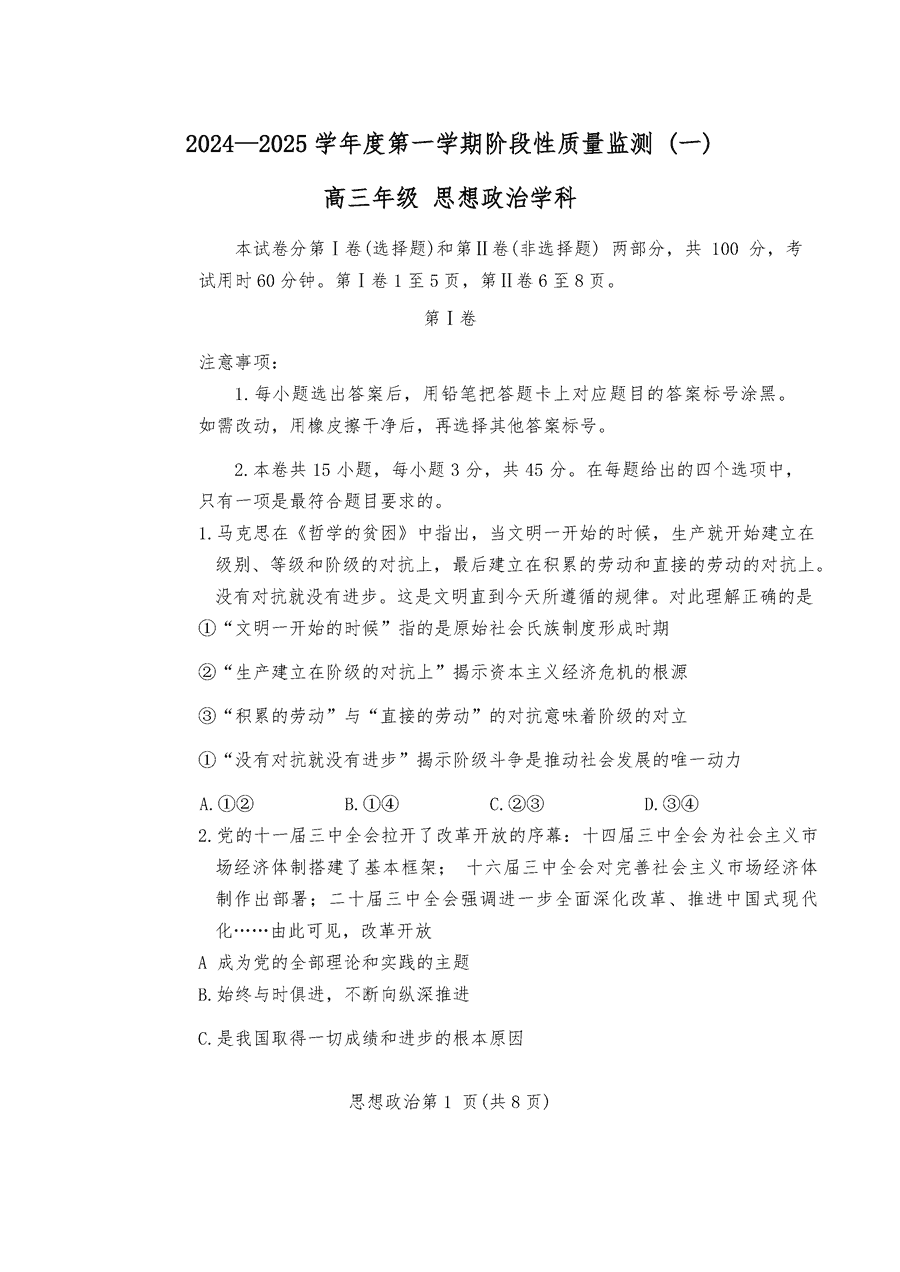 天津市南开区2024-2025学年高三上11月期中政治试题及答案