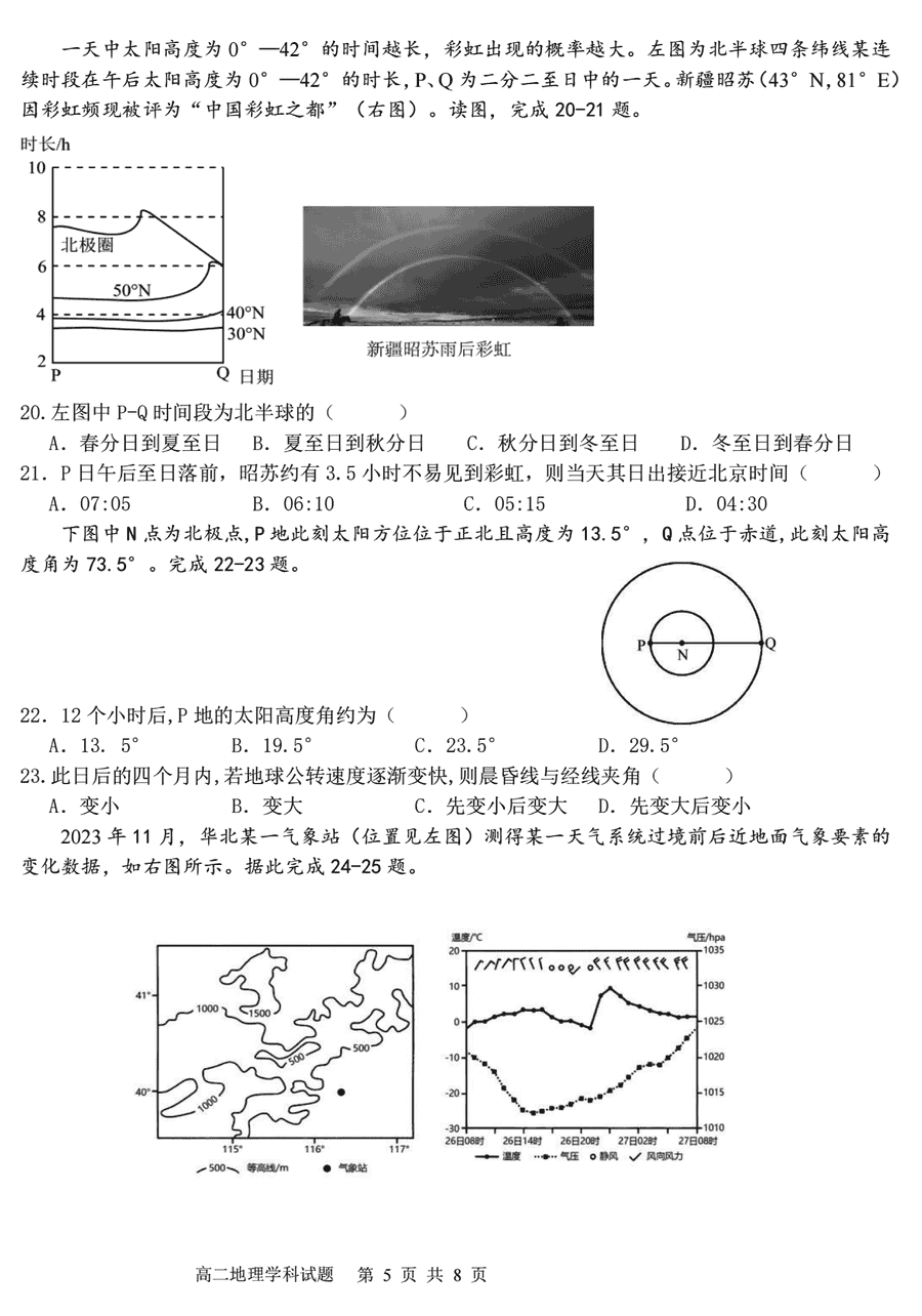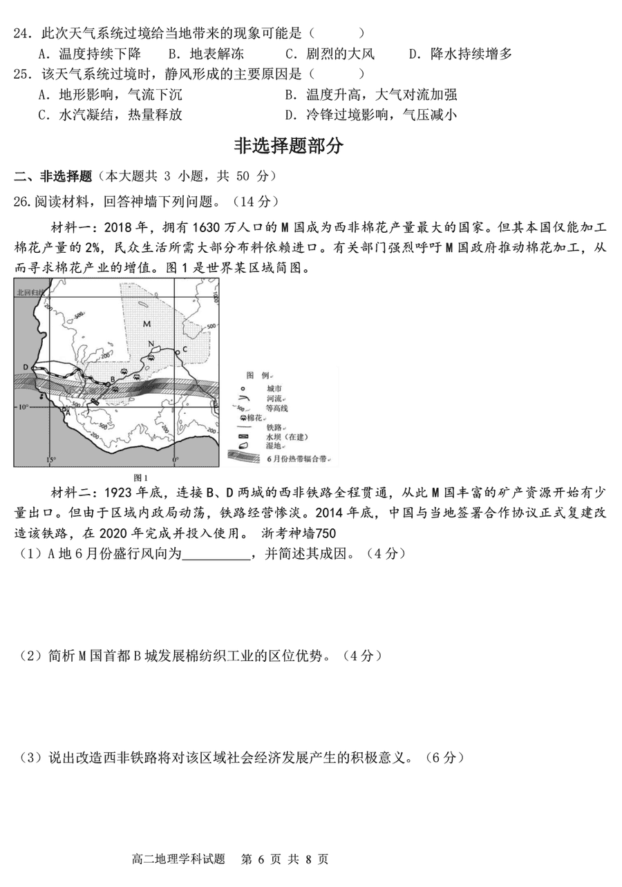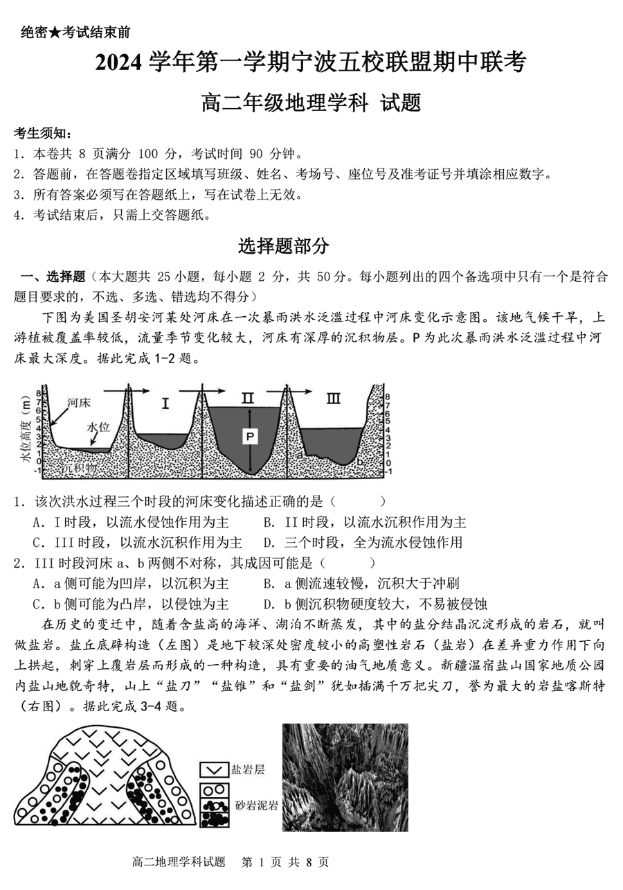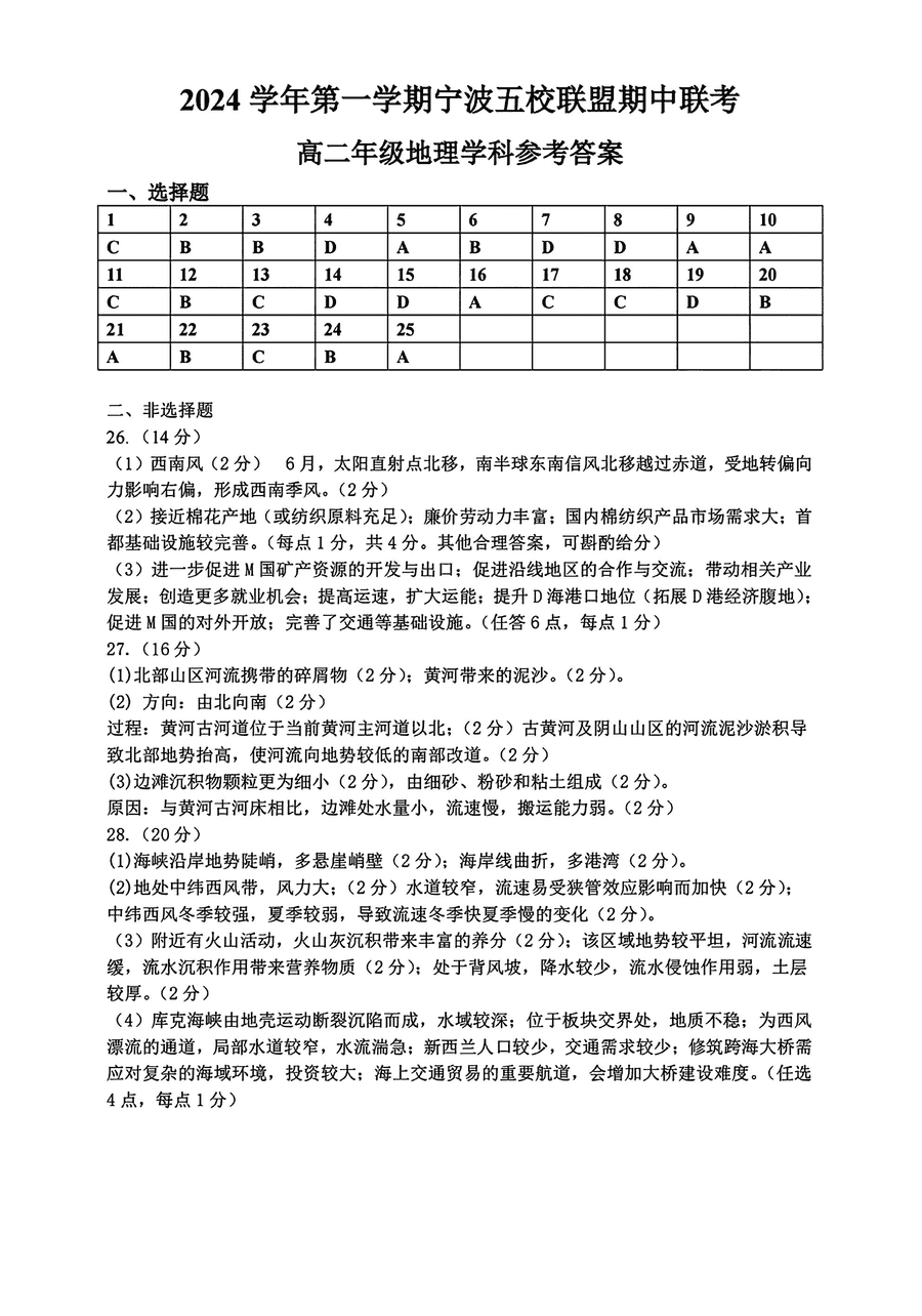 宁波五校联盟2024-2025学年高二期中地理试题及答案