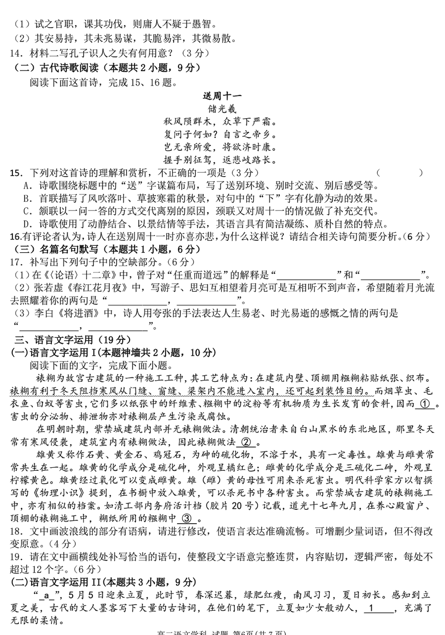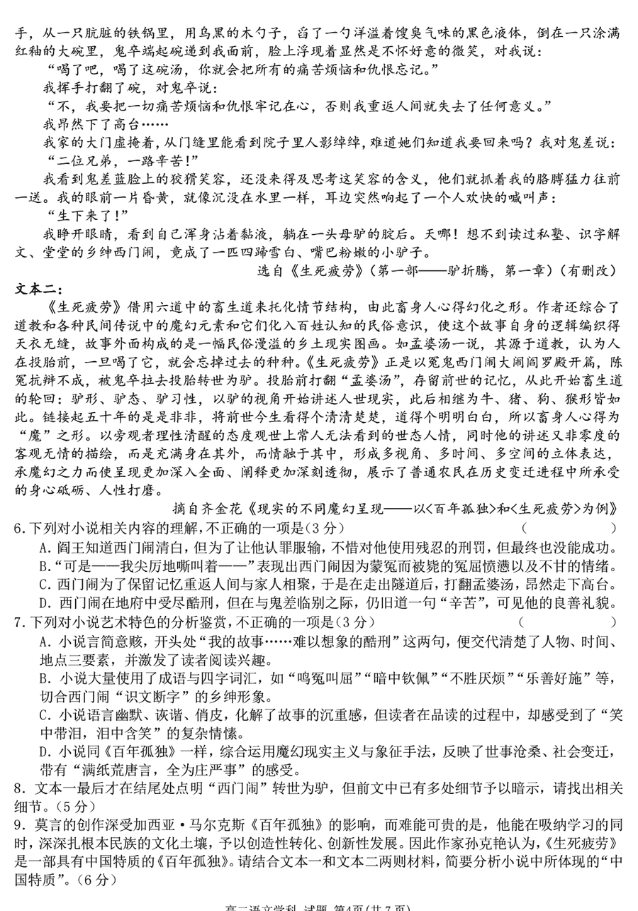 宁波五校联盟2024-2025学年高二期中语文试题及答案