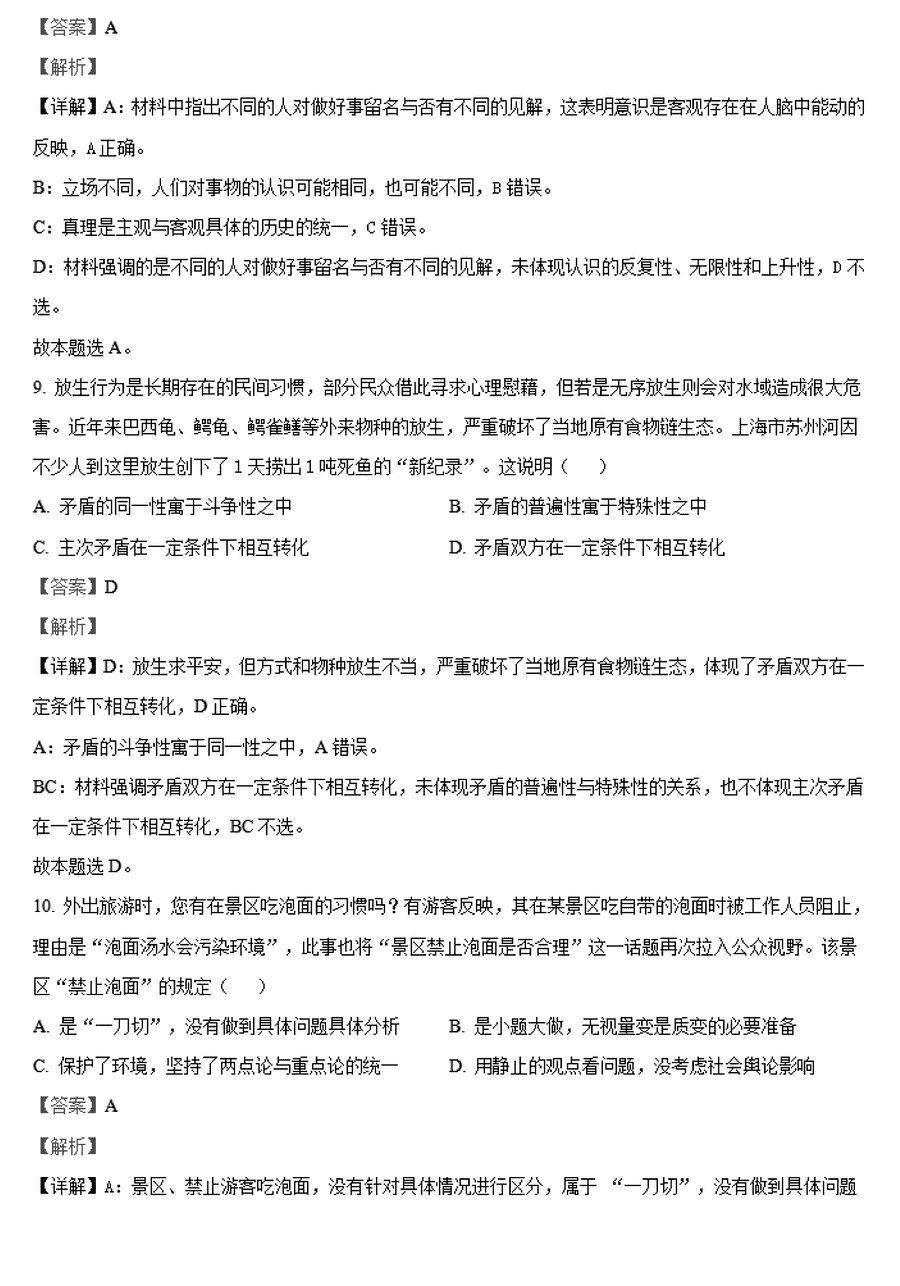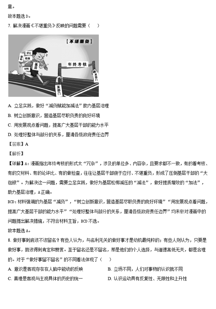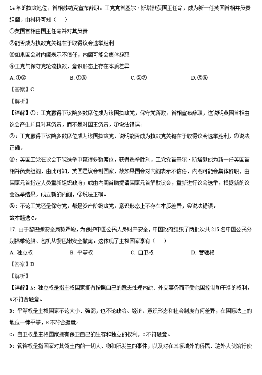 政治试题及答案解析
