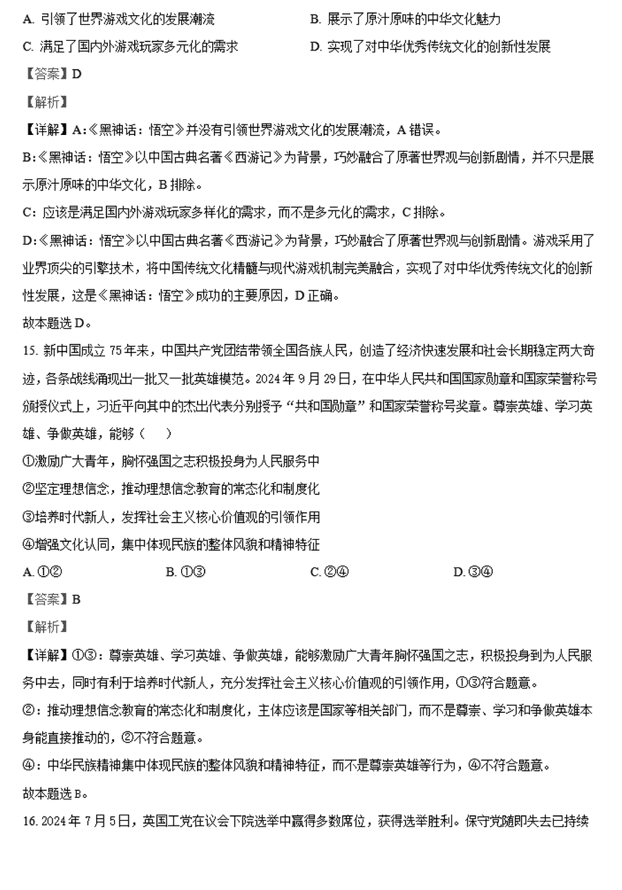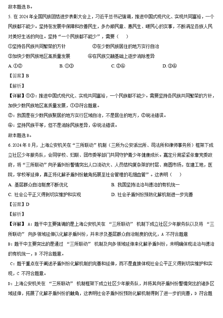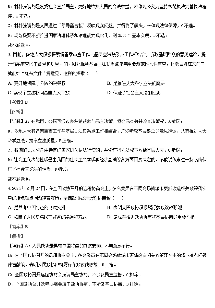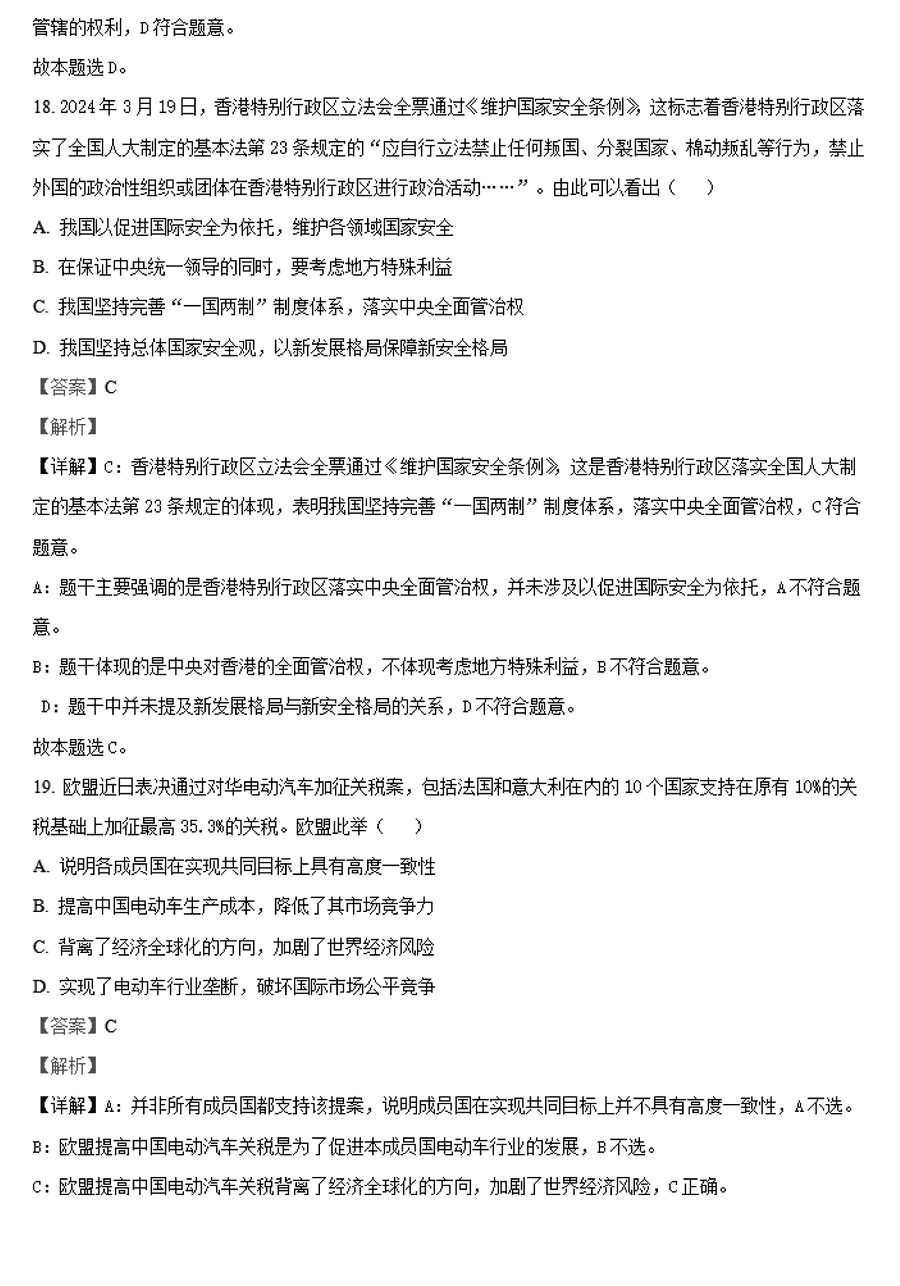 政治试题及答案解析