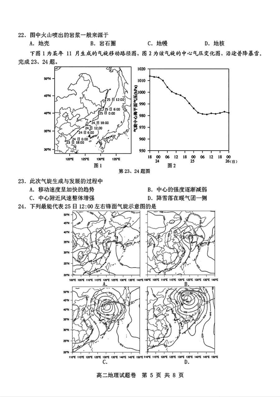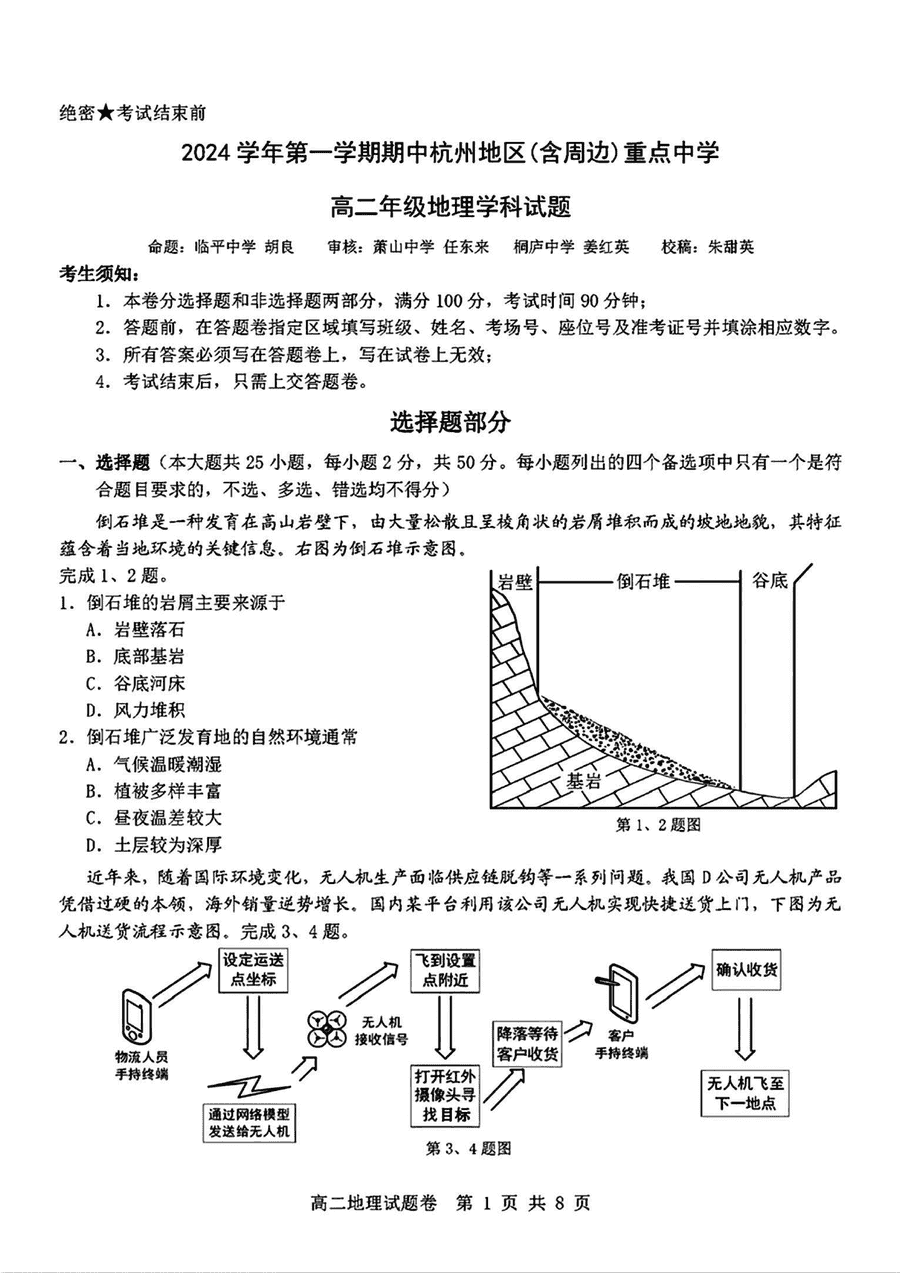 杭州地区(含周边)重点中学2024-2025学年高二上学期11月期中地理考试已于近日开考,为方便考生考后及时查看考试情况,查漏补缺、弥补不足,本文整理了试题答案解析相关信息!