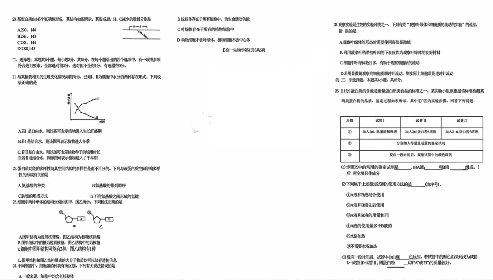 吉黑两省十校联合体2024-2025学年高一上11月期中生物试题及答案