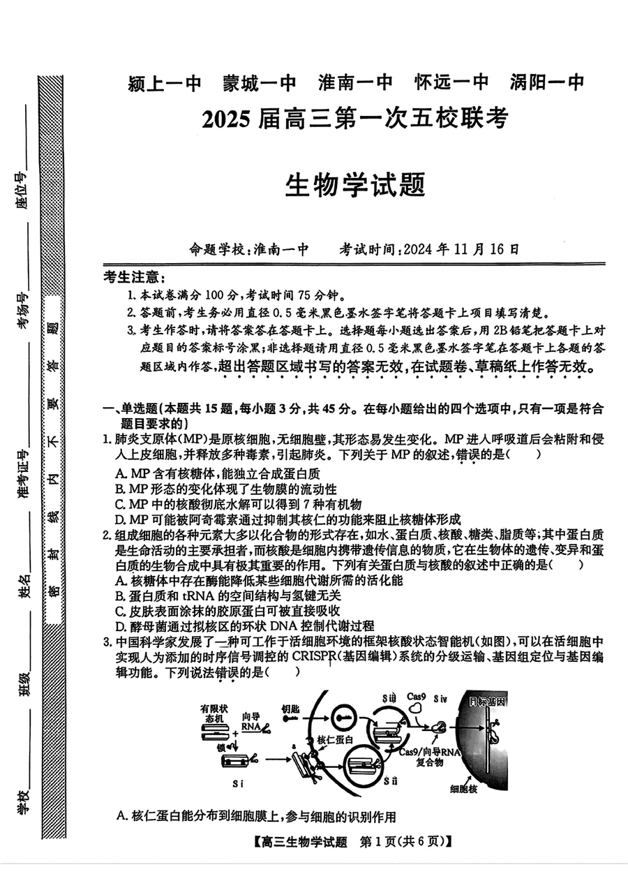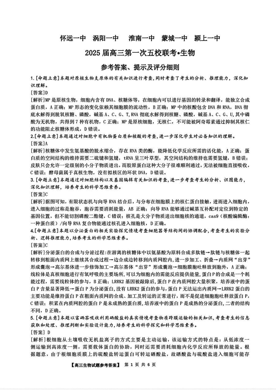 安徽2025届高三第一次五校联考生物试题及答案 时间:2024-11-17 22:56 安徽 理综试题 安徽2025届高三第一次五校联考生物考试已于近日开考,为方便考生考后及时查看考试情况,查漏补缺、弥补不足,本文整理了试题答案解析相关信息! 汇总:安徽2025届高三第一次五校联考试题及答案汇总 生物试题及答案解析
