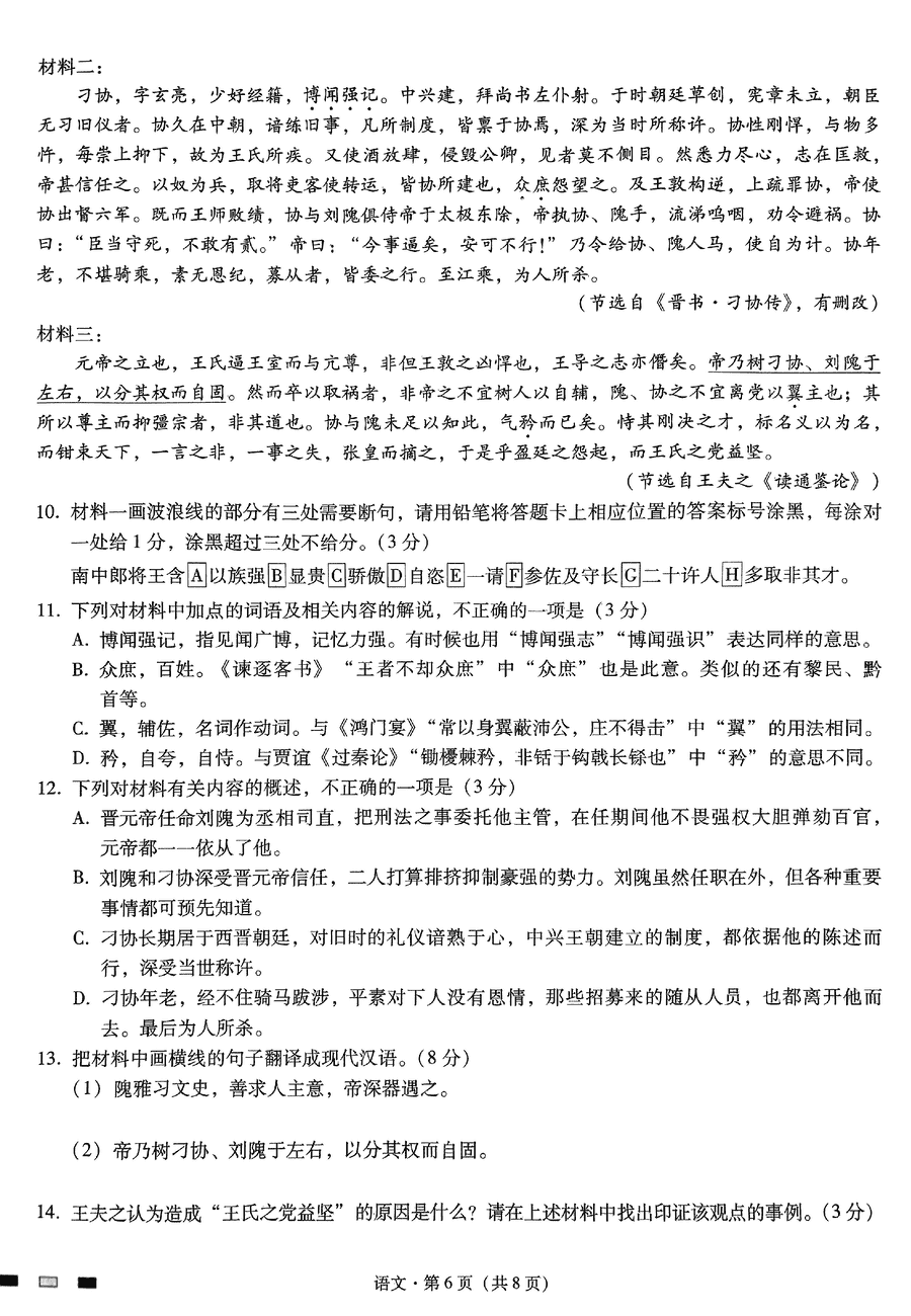 重庆巴蜀中学2025届高考适应性月考卷(三)语文试题及答案