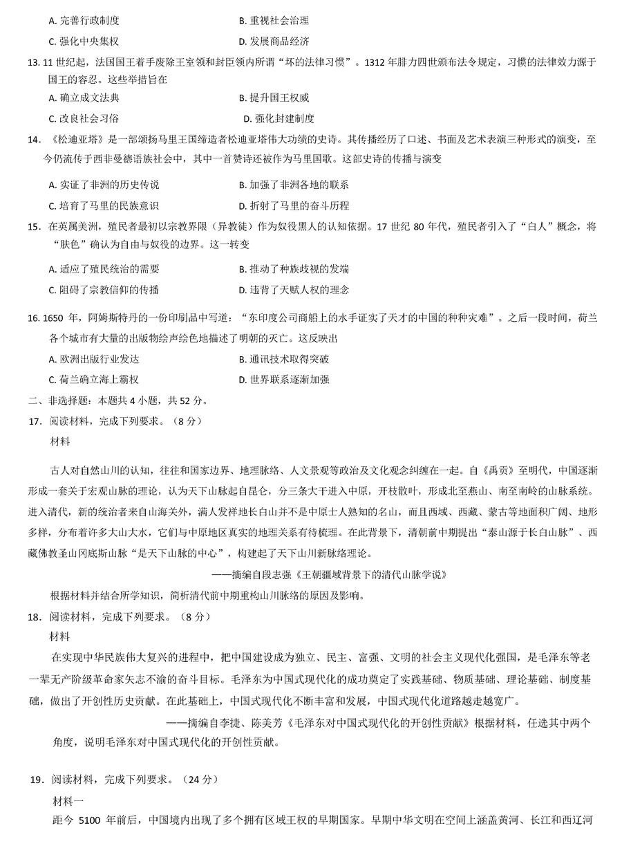 福建名校联考2025届高三11月期中质检历史试题及答案