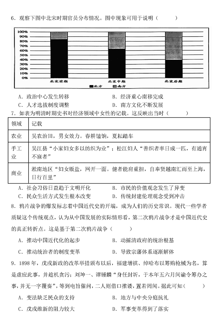 历史试题及答案解析