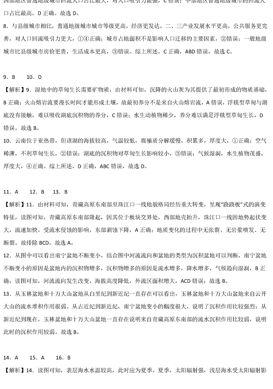 地理试题及答案解析