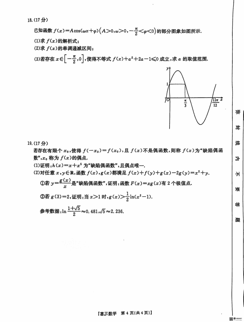 河北沧衡名校联盟2025届高三上学期11月期中数学试题及答案