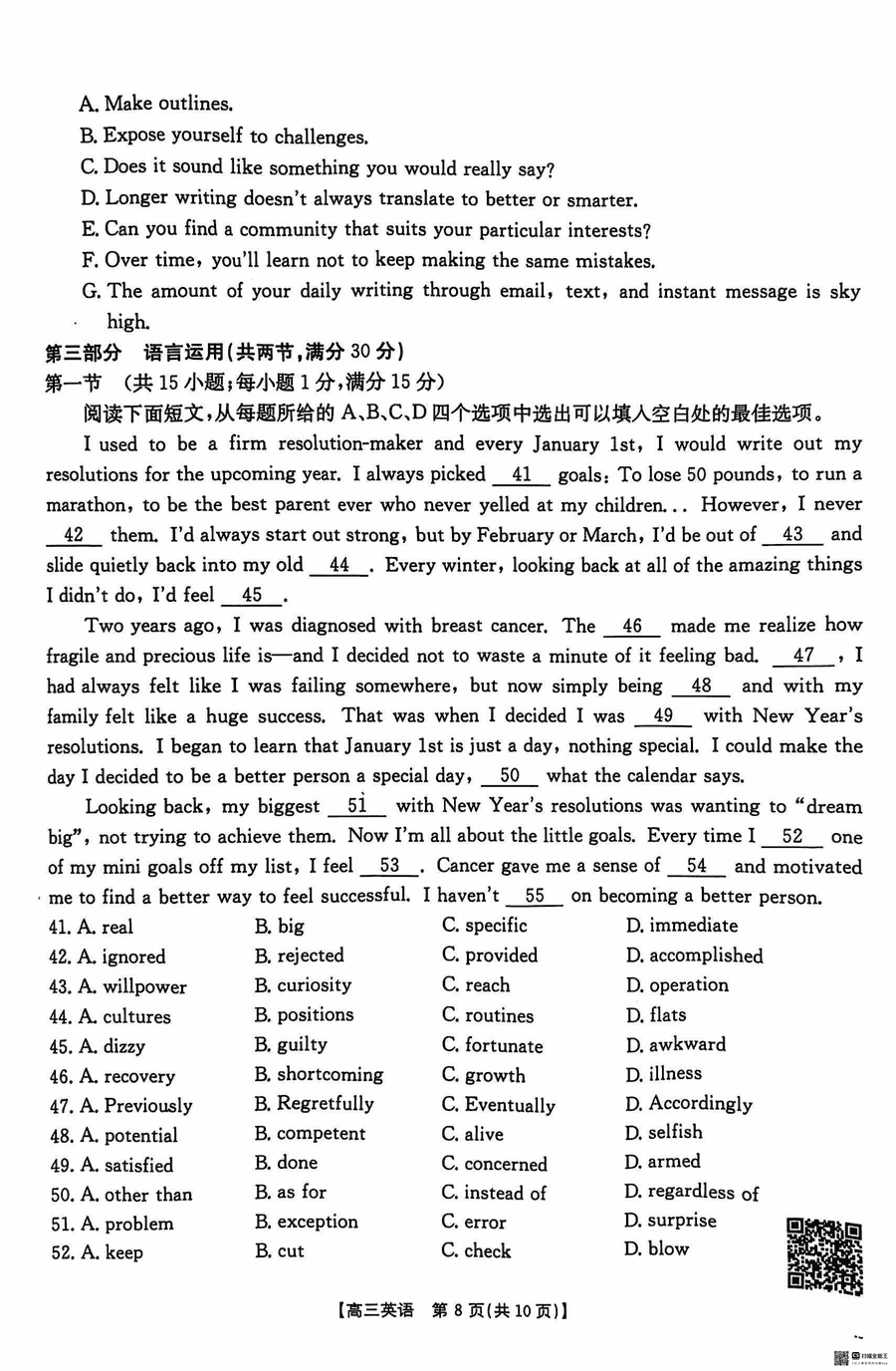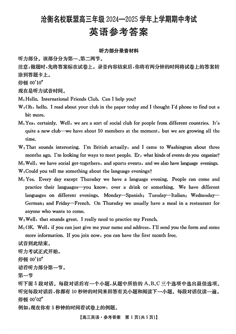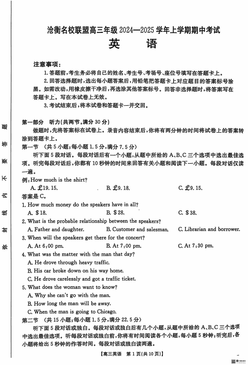 河北沧衡名校联盟2025届高三上学期11月期中英语考试已于近日开考,为方便考生考后及时查看考试情况,查漏补缺、弥补不足,本文整理了试题答案解析相关信息!