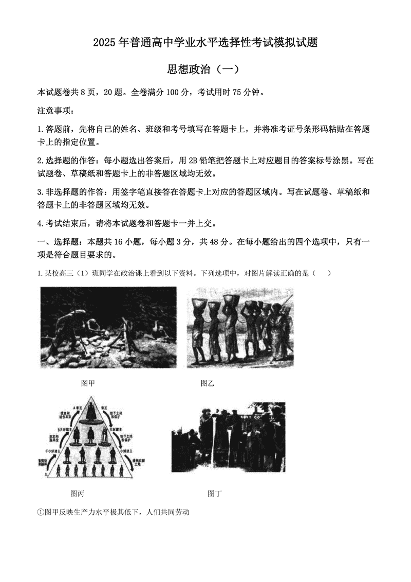 衡水金卷2025年高三学业选择考模拟试题(一)政治试题及答案