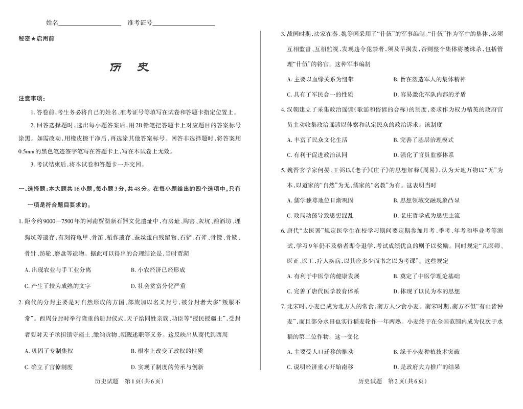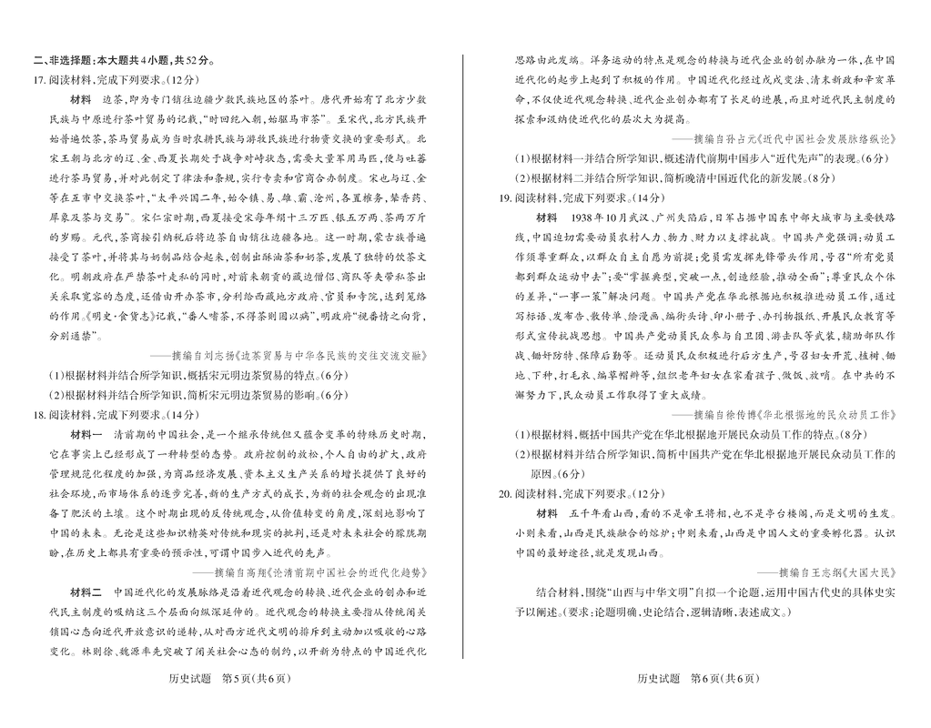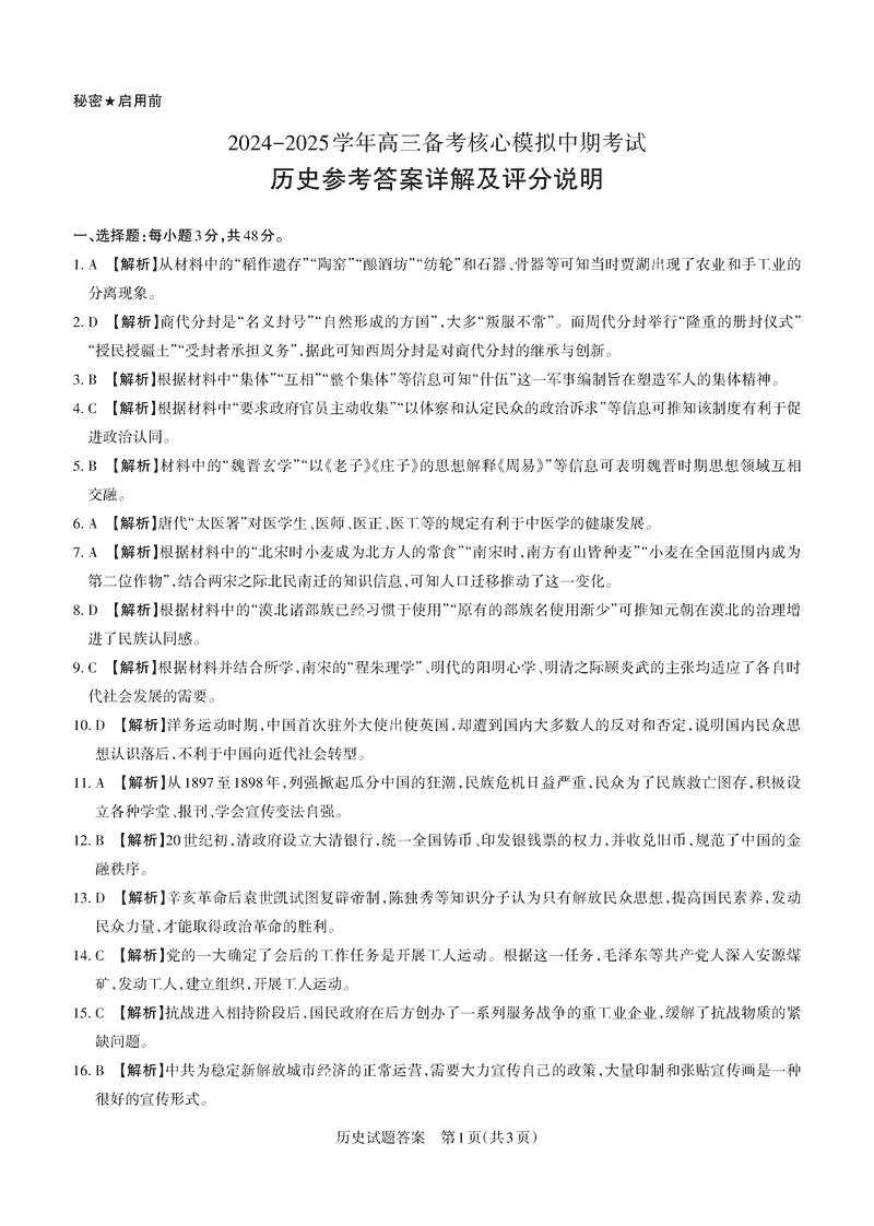 山西思而行2025届高三备考核心模拟中期历史试题及答案