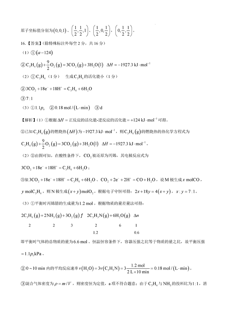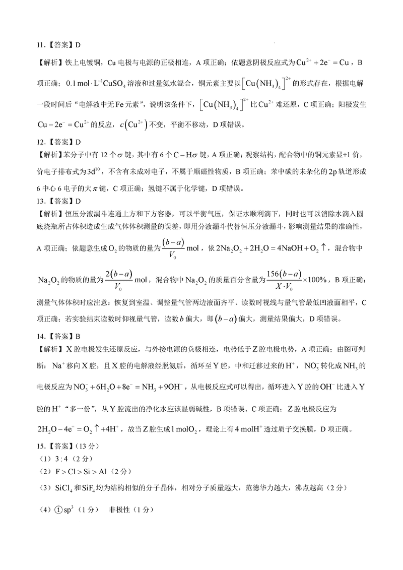 化学试题及答案解析