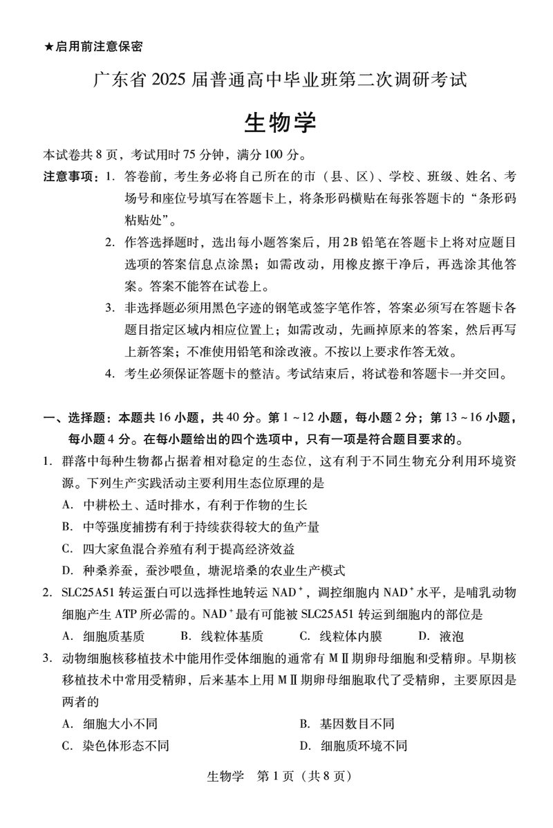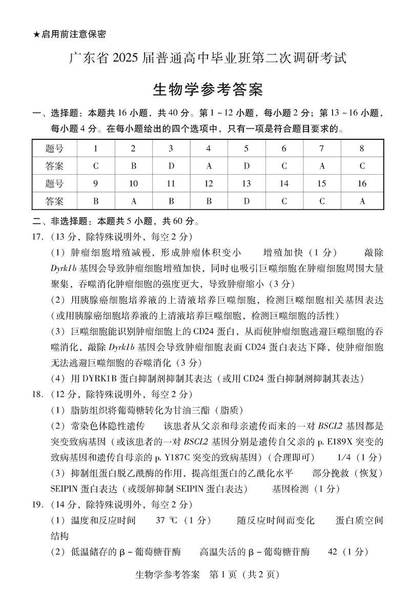 2025届广东高三第二次调研生物试题及答案 时间:2024-11-23 16:44 广东 理综试题 2025届广东高三第二次调研生物考试已于近日开考,为方便考生考后及时查看考试情况,查漏补缺、弥补不足,本文整理了试题答案解析相关信息! 汇总:2025届广东高三第二次调研考试试题及答案汇总 生物试题及答案解析