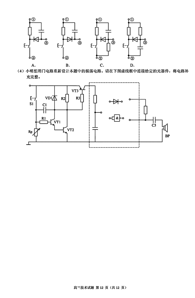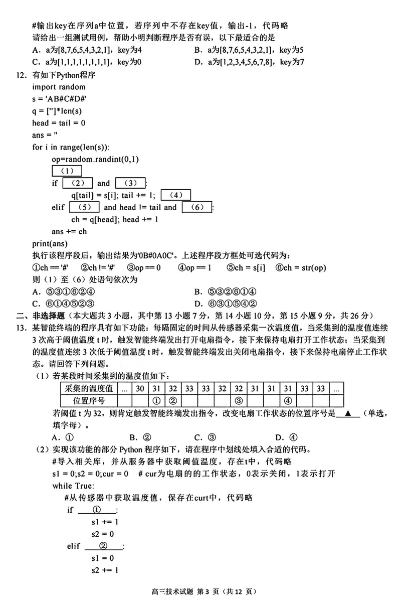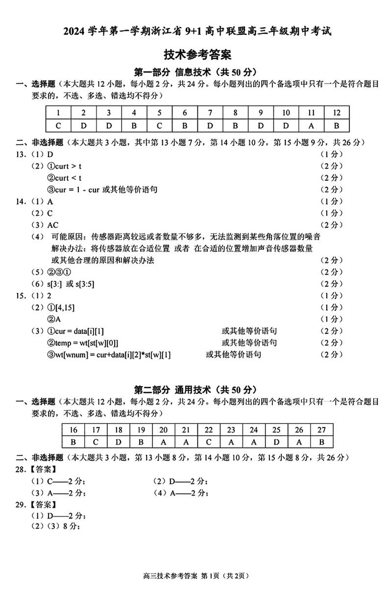 浙江省9+1高中联盟2025届高三期中技术试题及答案