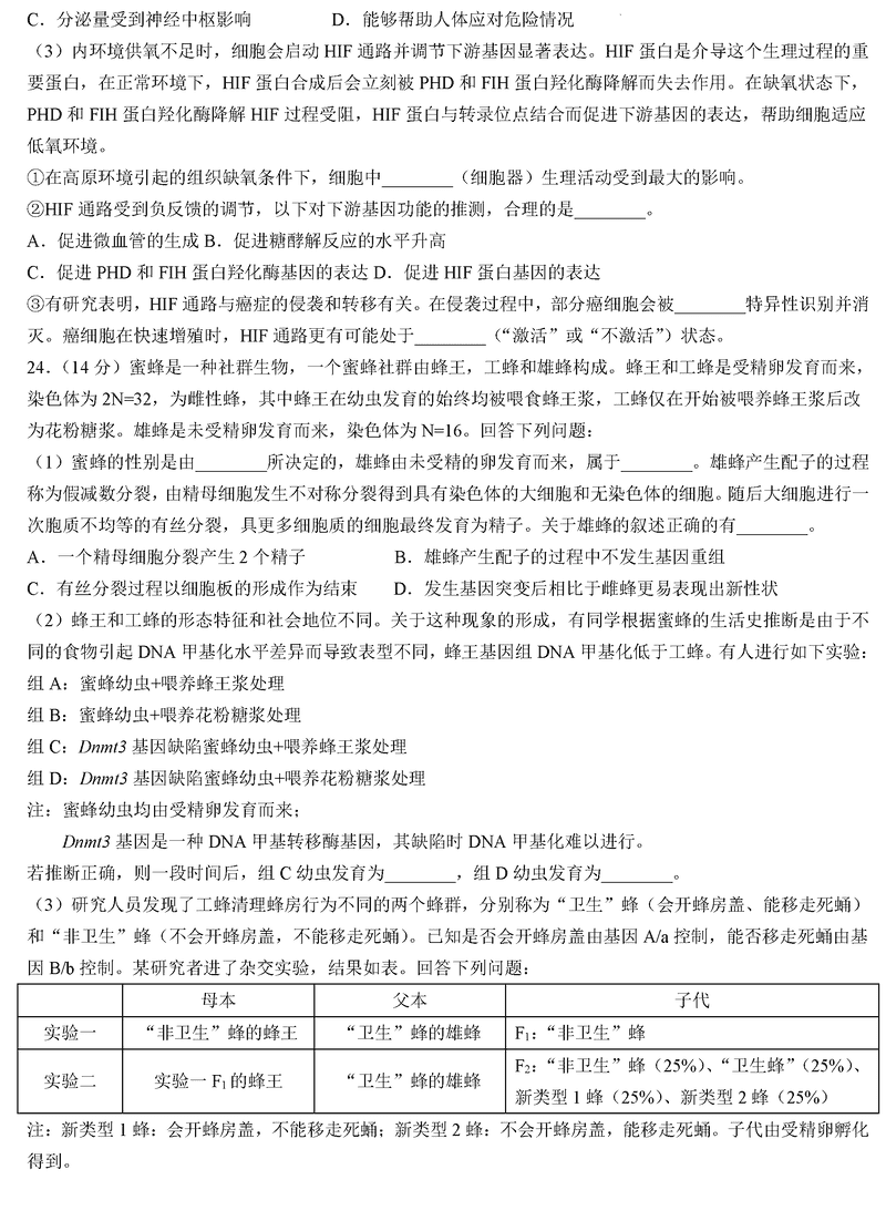 浙江省9+1高中联盟2025届高三期中生物试题及答案