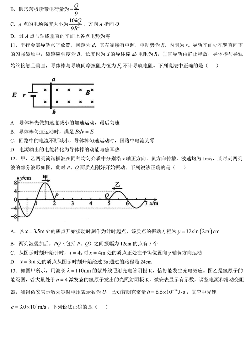 浙江省9+1高中联盟2025届高三期中物理试题及答案