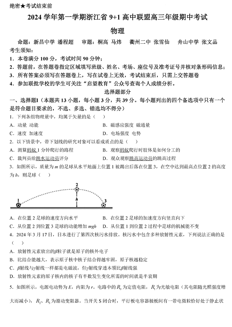浙江省9+1高中联盟2025届高三期中物理考试已于近日开考,为方便考生考后及时查看考试情况,查漏补缺、弥补不足,本文整理了试题答案解析相关信息!