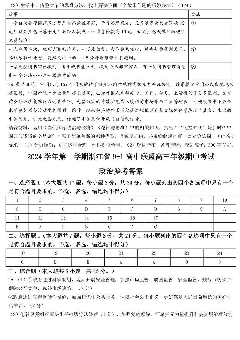 浙江省9+1高中联盟2025届高三期中政治考试已于近日开考,为方便考生考后及时查看考试情况,查漏补缺、弥补不足,本文整理了试题答案解析相关信息!