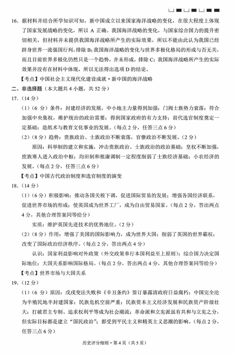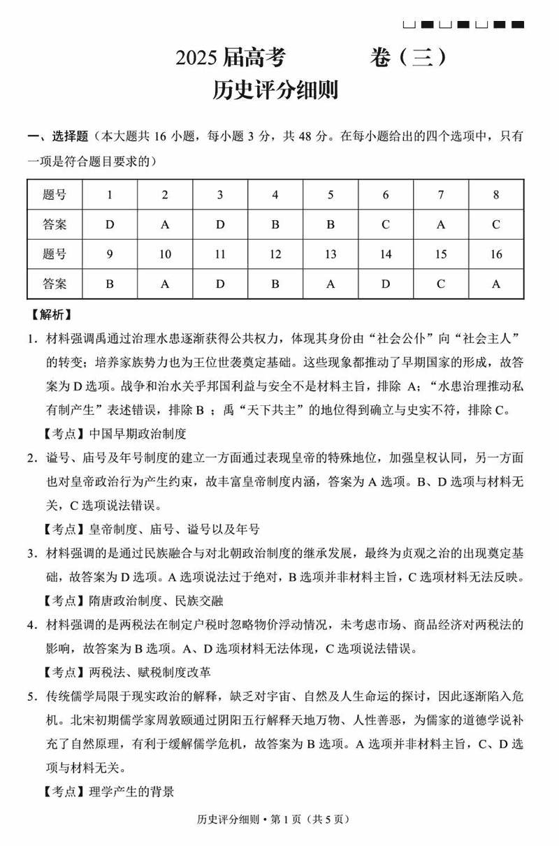 贵阳一中2025届高考适应性月考(三)历史考试已于近日开考,为方便考生考后及时查看考试情况,查漏补缺、弥补不足,本文整理了试题答案解析相关信息!