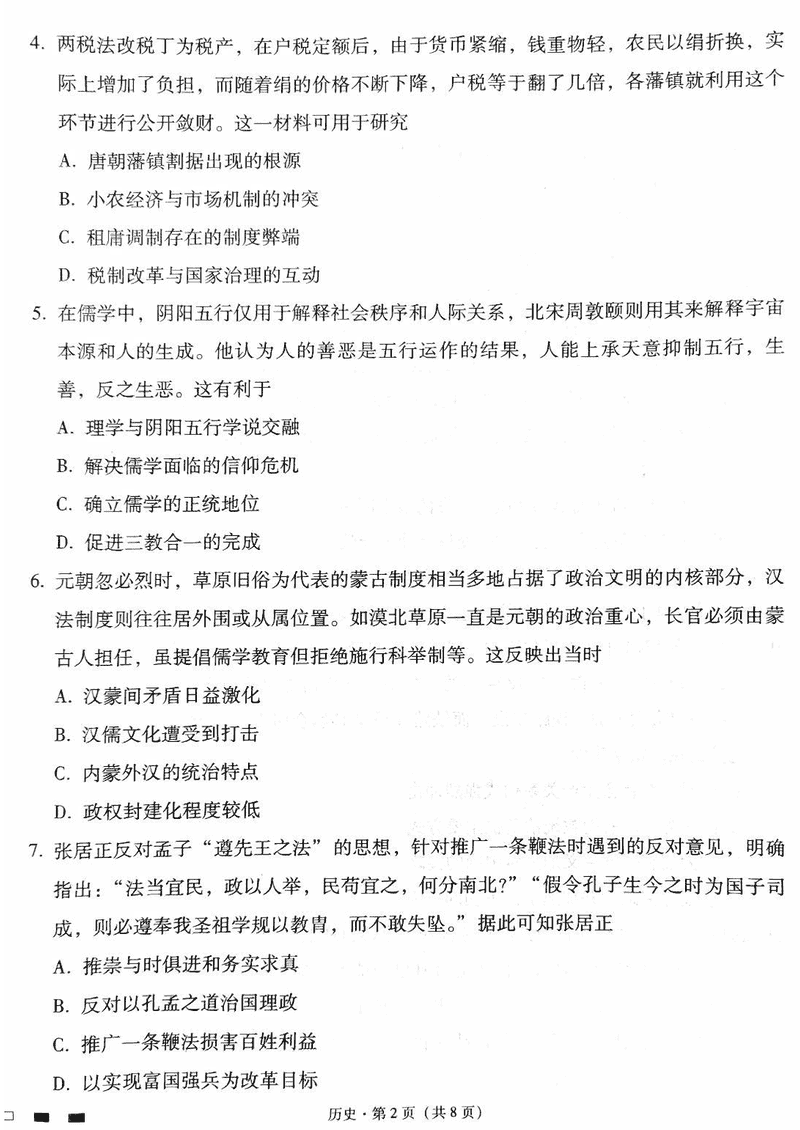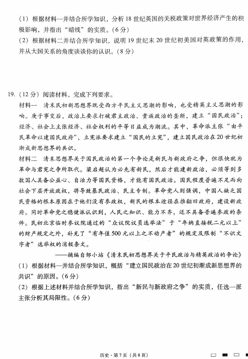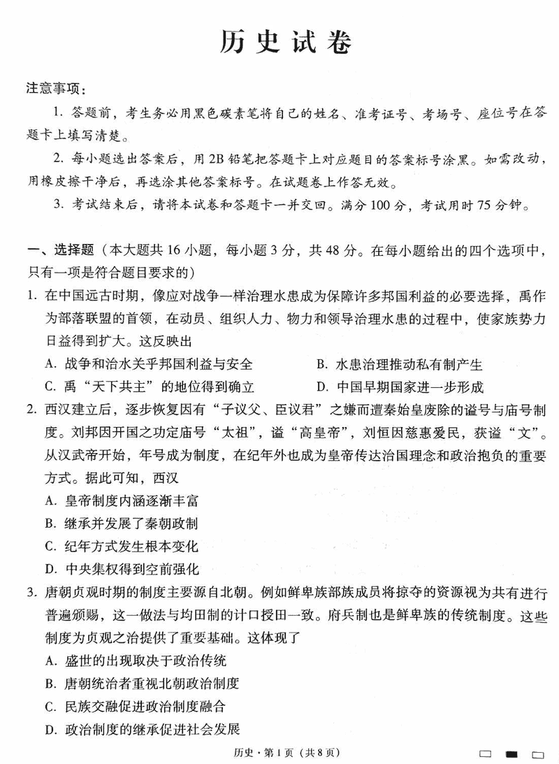 贵阳一中2025届高考适应性月考(三)历史试题及答案