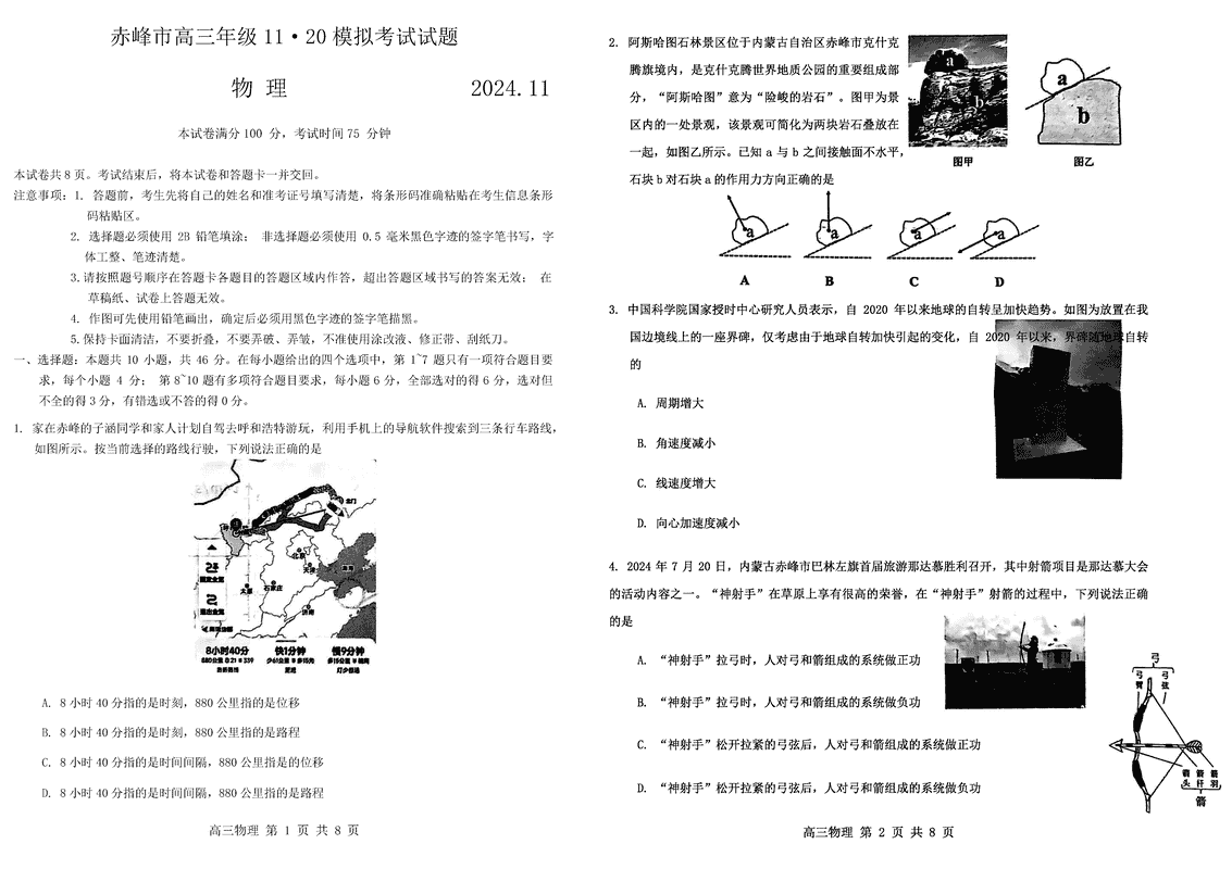 内蒙古赤峰市2024年11.20高三模拟物理试题及答案