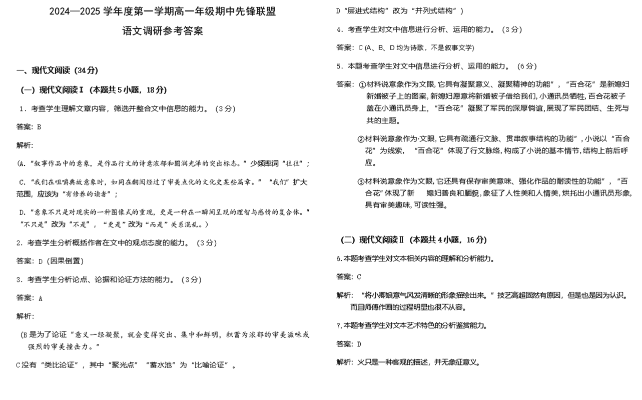 海南省先锋联盟2024-2025学年高一上学期11月期中语文考试已于近日开考,为方便考生考后及时查看考试情况,查漏补缺、弥补不足,本文整理了试题答案解析相关信息!