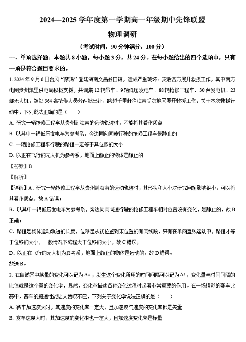 海南省先锋联盟2024-2025学年高一上学期11月期中物理考试已于近日开考,为方便考生考后及时查看考试情况,查漏补缺、弥补不足,本文整理了试题答案解析相关信息!